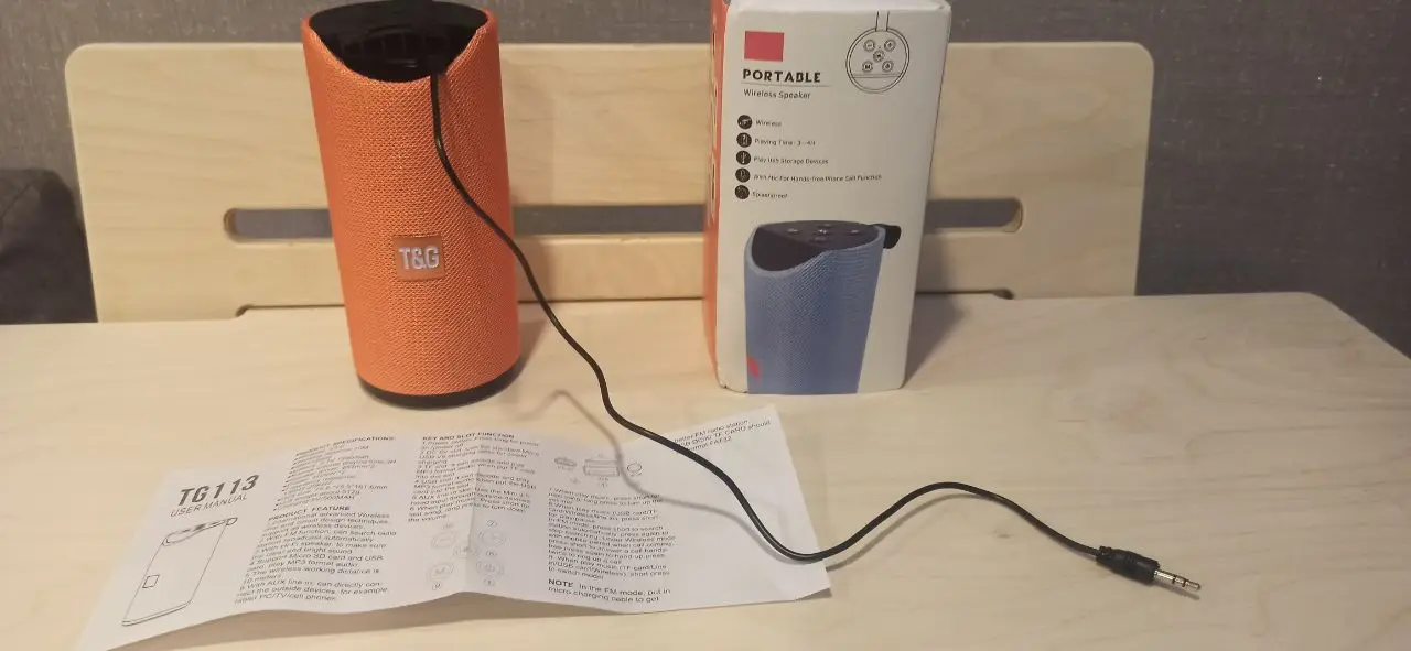 Хорошее качество материалов. Для портативной колонки играет вполне достойно. Громкая. В комплекте два кабеля: USB и AUX. Доставка в Харьков Новой почтой за 19 дней.