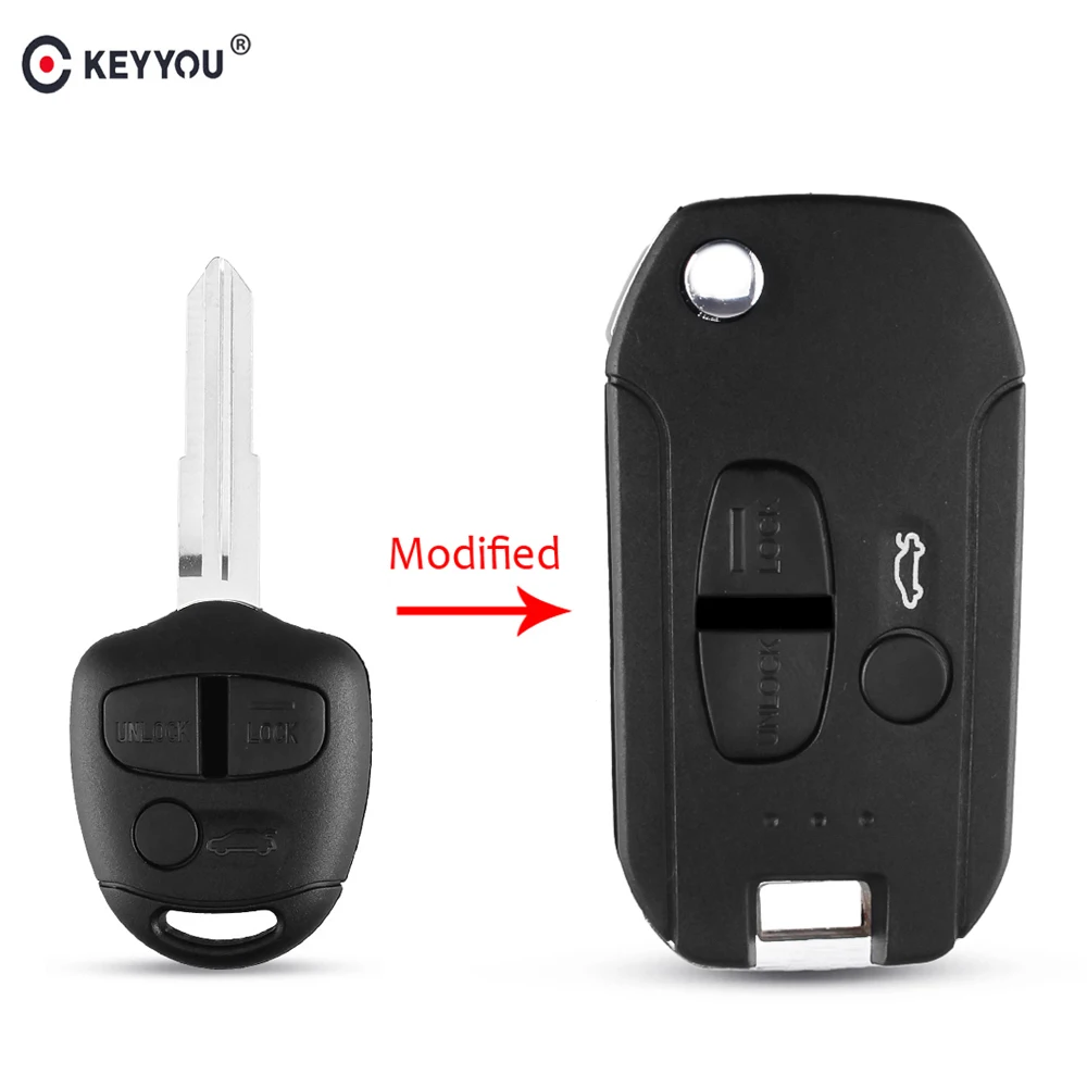 Модифицированный откидной пульт дистанционного управления KEYYOU для автомобильного ключа чехол для MITSUBISHI Lancer EX Outlander Grandis Pajero 3 кнопки MIT8 левое лезвие
