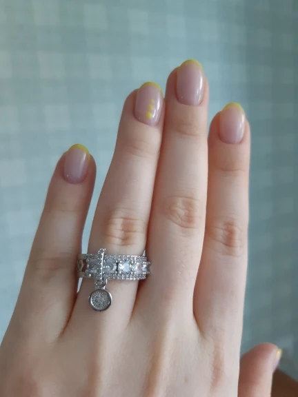 Кольцо очень красивое блестит отлично но болтающуюся часть потеряла в первый день!