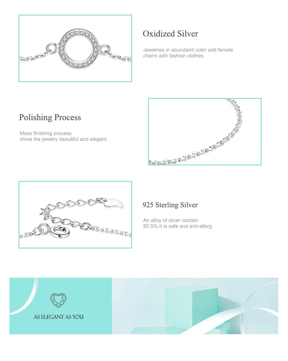 ELESHE 2019 новый подлинный 925 Стерлинговое Серебро Сверкающий Круглый браслет с шармом цепочка плетеные браслеты женские ювелирные изделия
