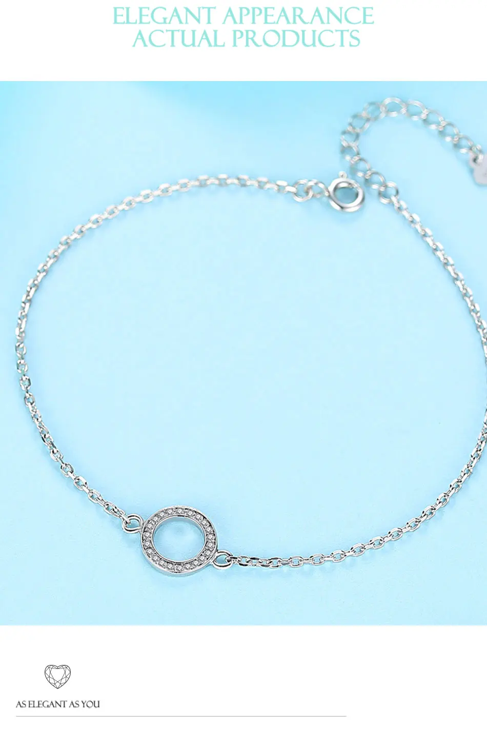 Женский браслет-цепочка из серебра 925 пробы, с круглым кристаллом