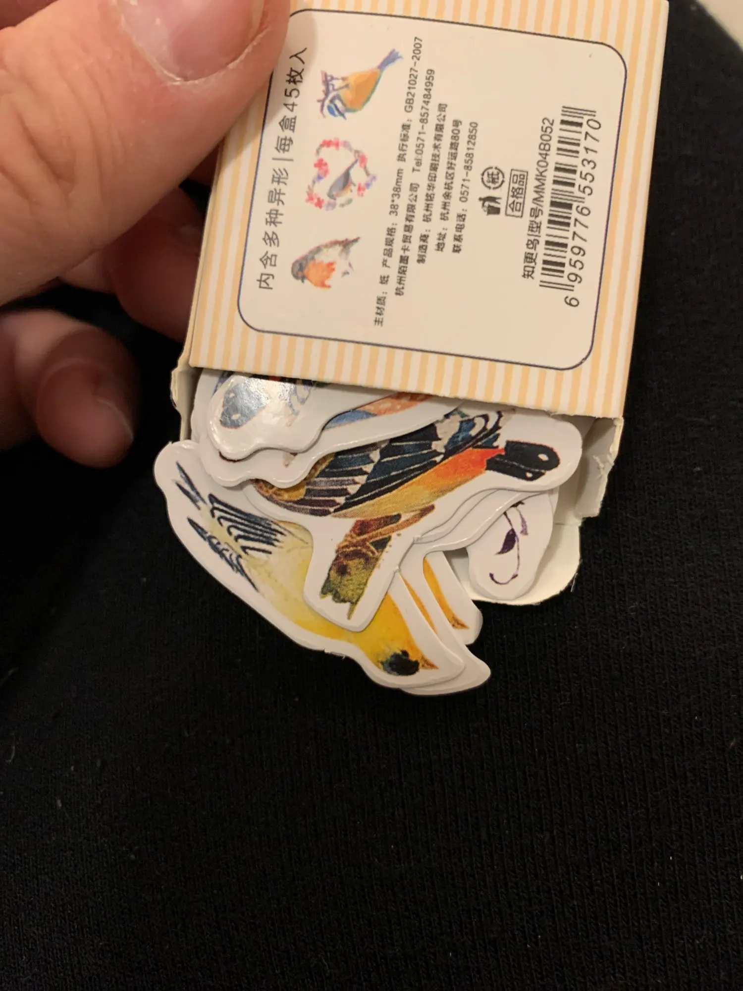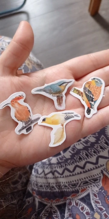 Очень красивая маленькая коробка, заполненная красивыми наклейками для маленьких птиц. Мне нравятся.