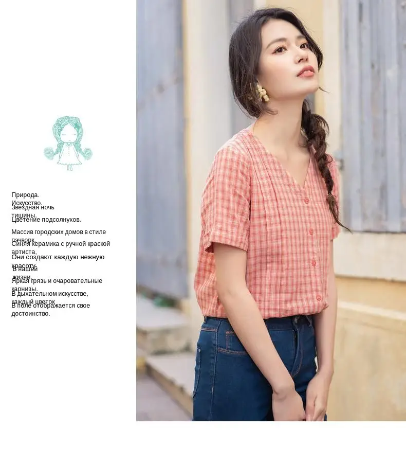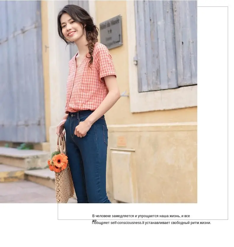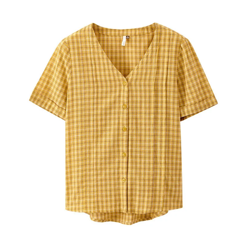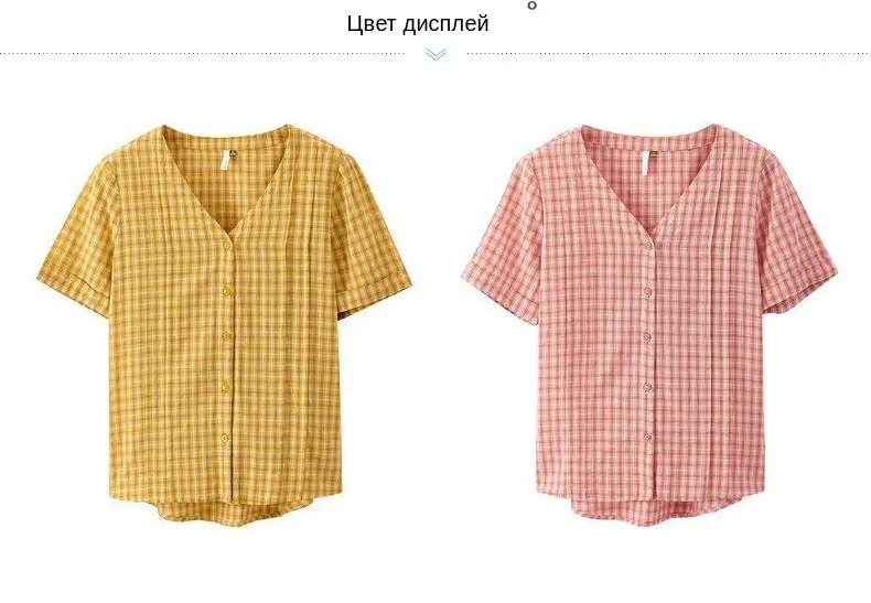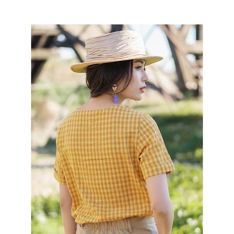 INMAN Летняя женская клетчатая рубашка с v-образным вырезом в стиле ретро