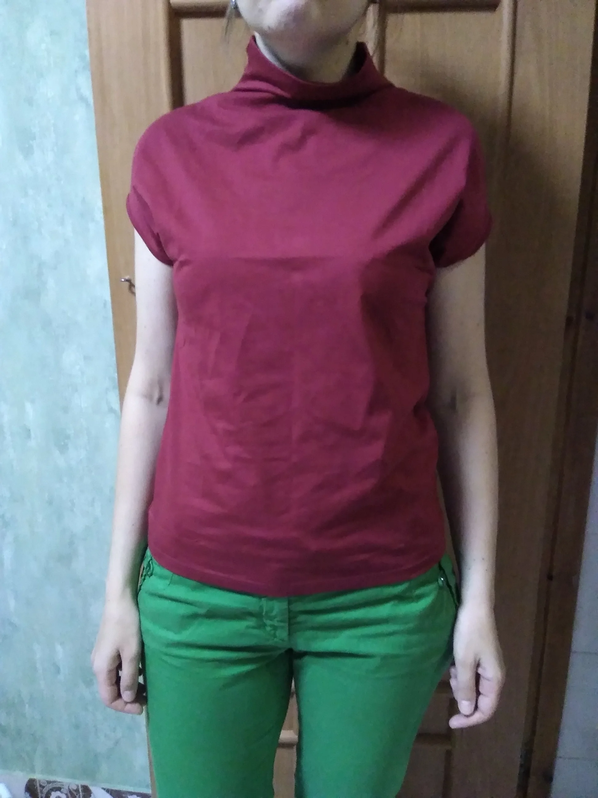 Шла посылка 3 недели,отслеживалась. Качество хорошее, претензий нет, х/б плотный. На свой 44-46 р-р русский взяла L она мне очень широкая ( можно смело было брать М ) , пройма маленькая, мне не удобно ( хотя руки у меня худенькие ). Мне в этой футболке не удобно ( не мой крой ) ,брала по акции за 520 руб. Единственное очень красивый цвет ( мой ) .