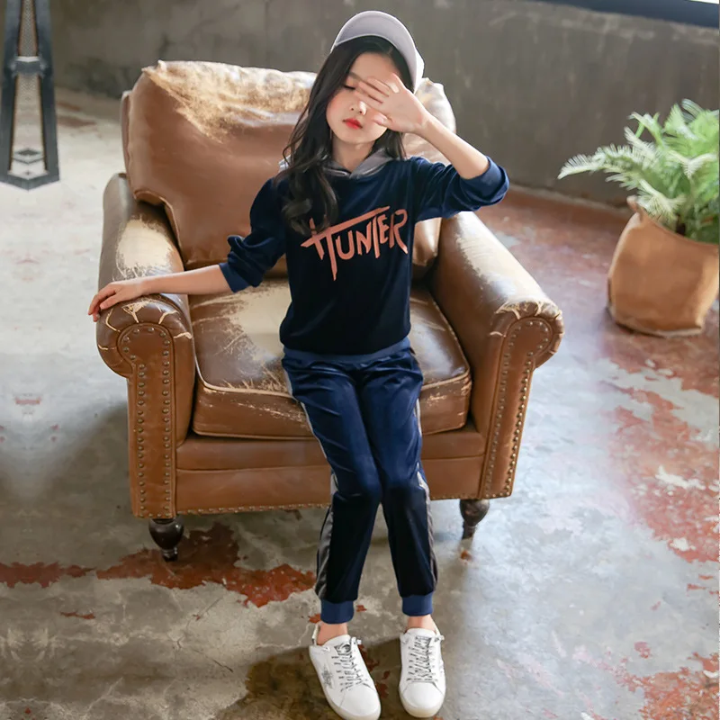Спортивные костюмы для девочек-подростков, осенняя одежда 2020, куртка с капюшоном и штаны, спортивный костюм из 2 предметов, одежда для маленьких девочек-подростков