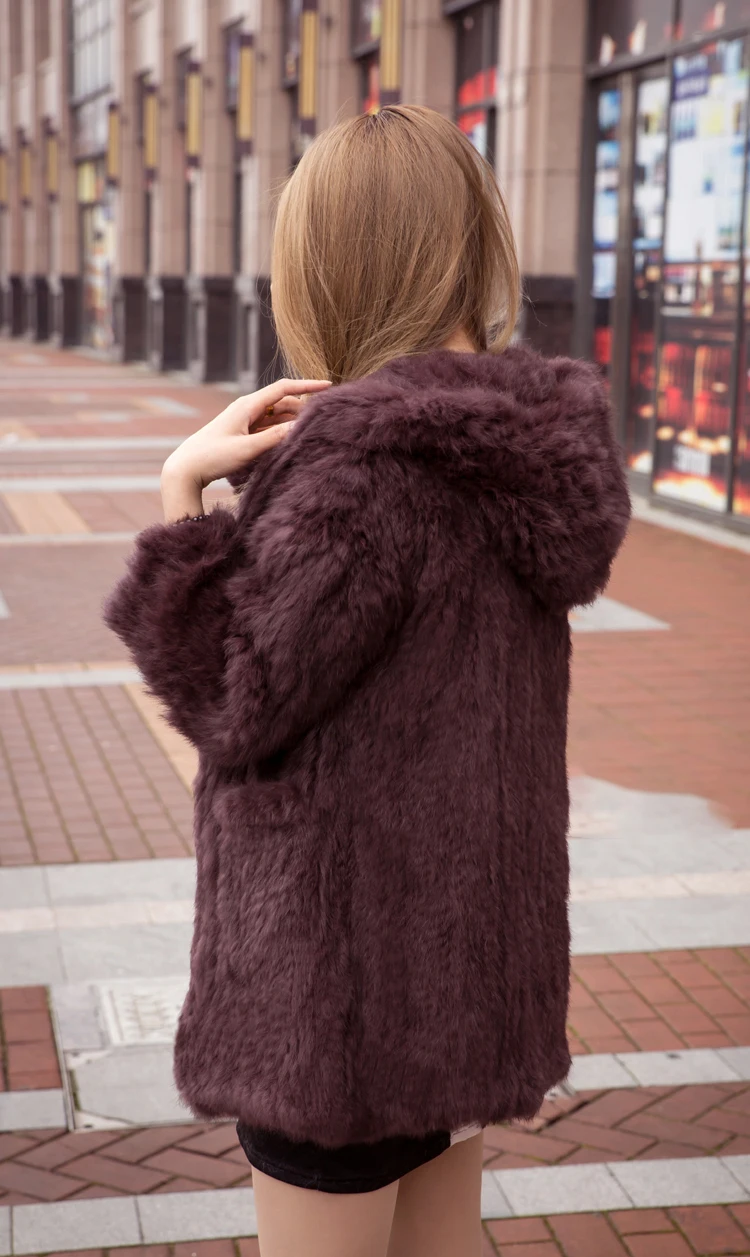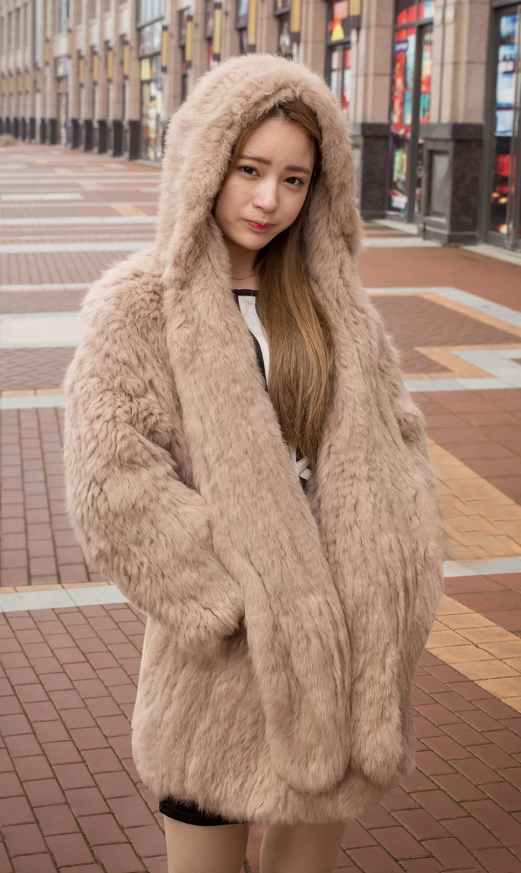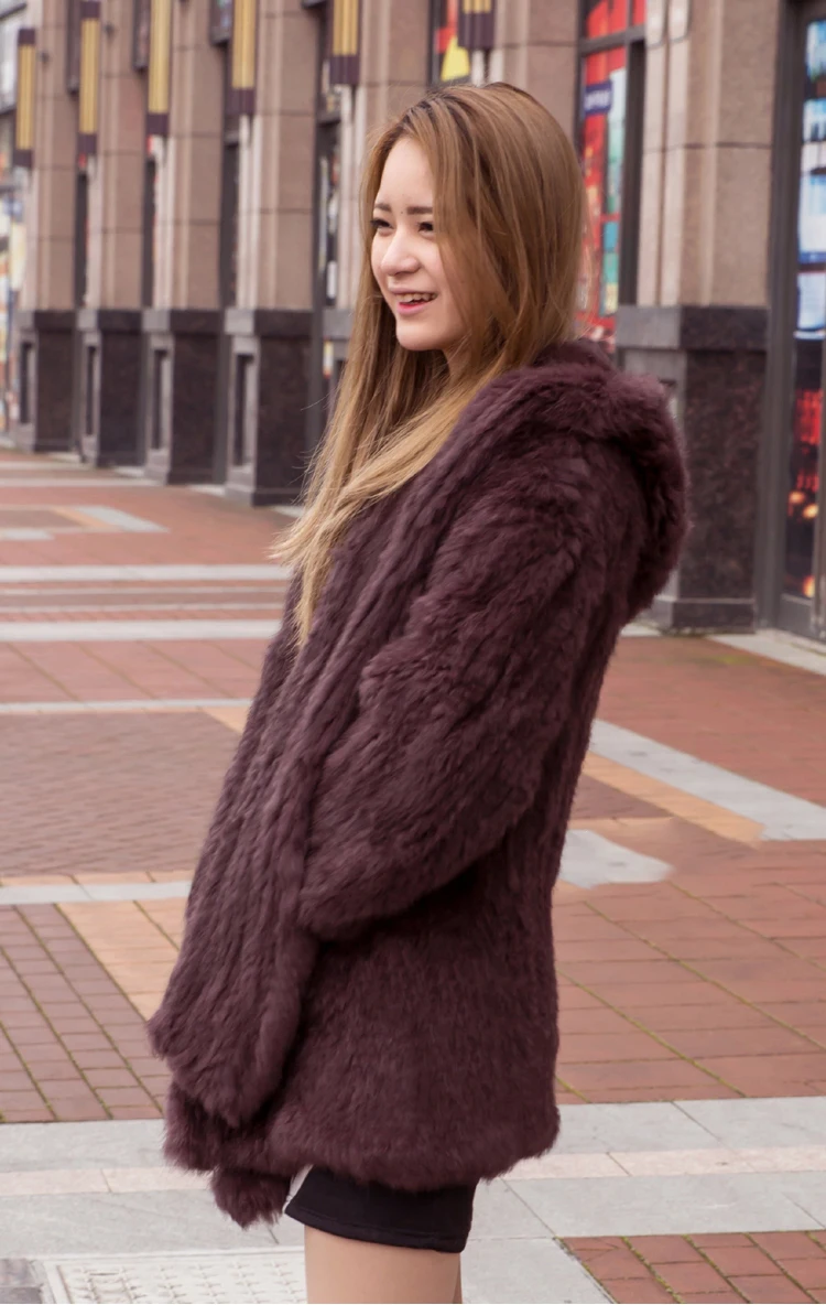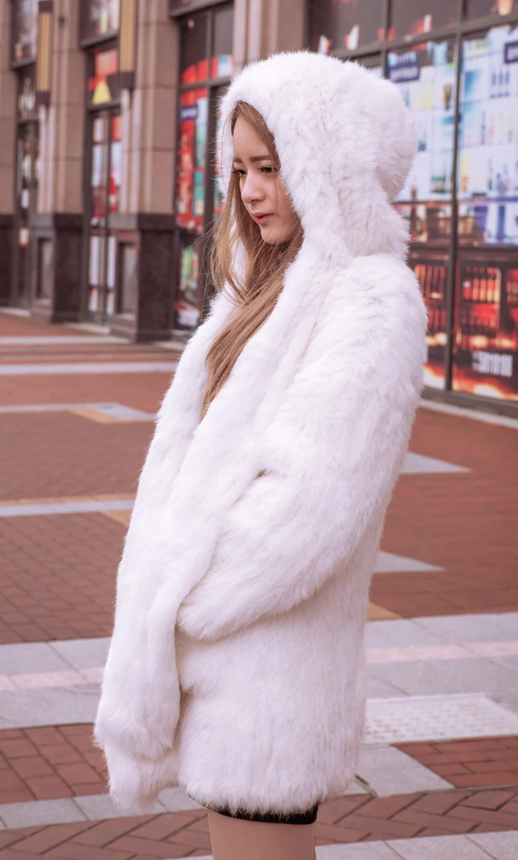 Зимнее женское пальто с капюшоном из натурального кроличьего меха, широкий свитер накидка, меховое пальто, меховые куртки с капюшоном