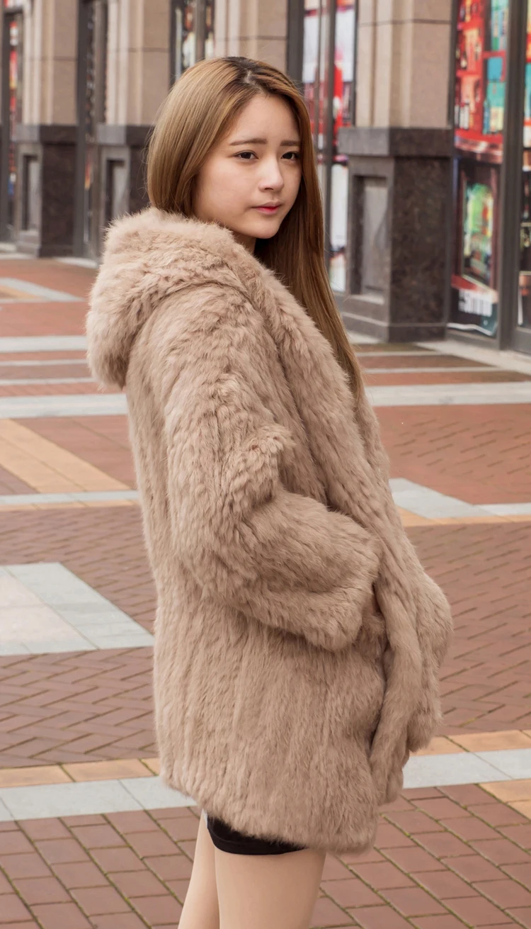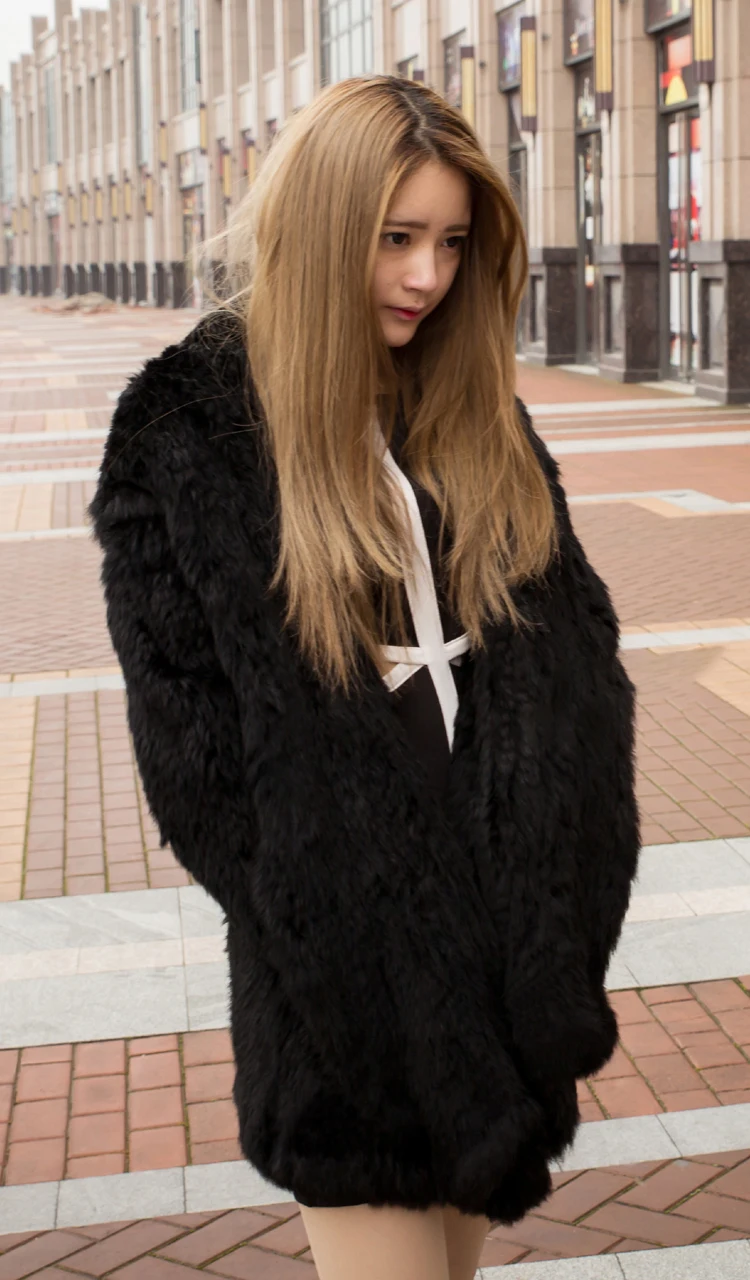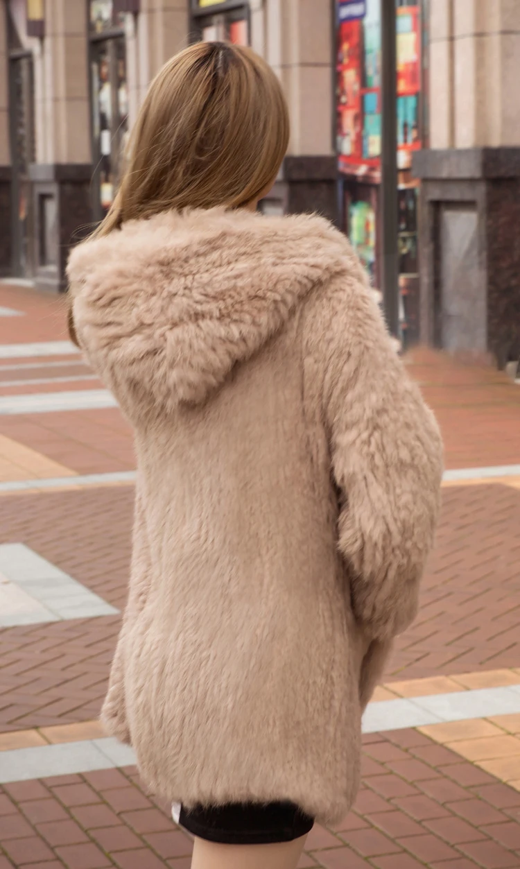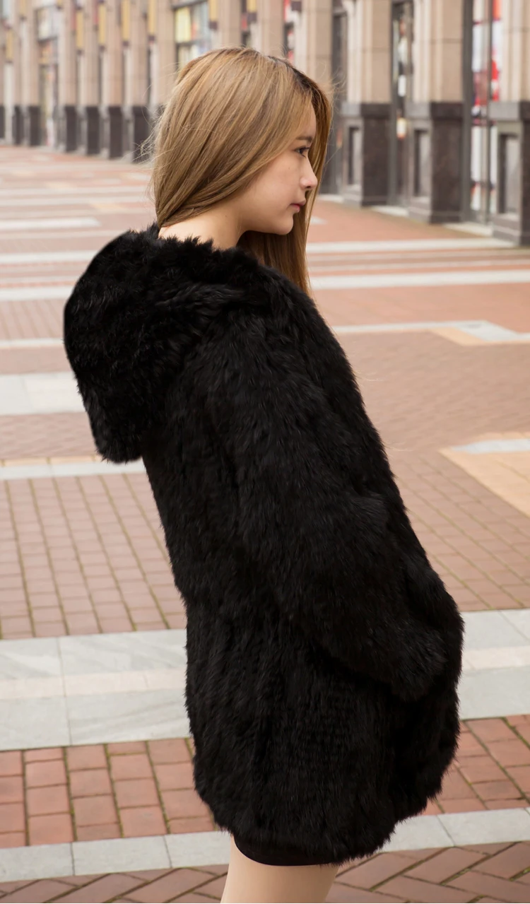 Зимнее женское пальто с капюшоном из натурального кроличьего меха, широкий свитер накидка, меховое пальто, меховые куртки с капюшоном