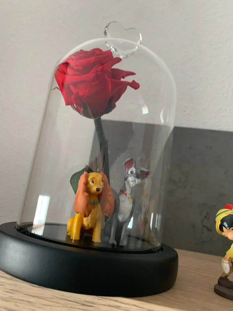 Красная роза Красавица и Чудовище в стеклянном куполе на деревянной подставке для подарков на день Святого Валентина, светодиодная, лампы с розами, Рождество