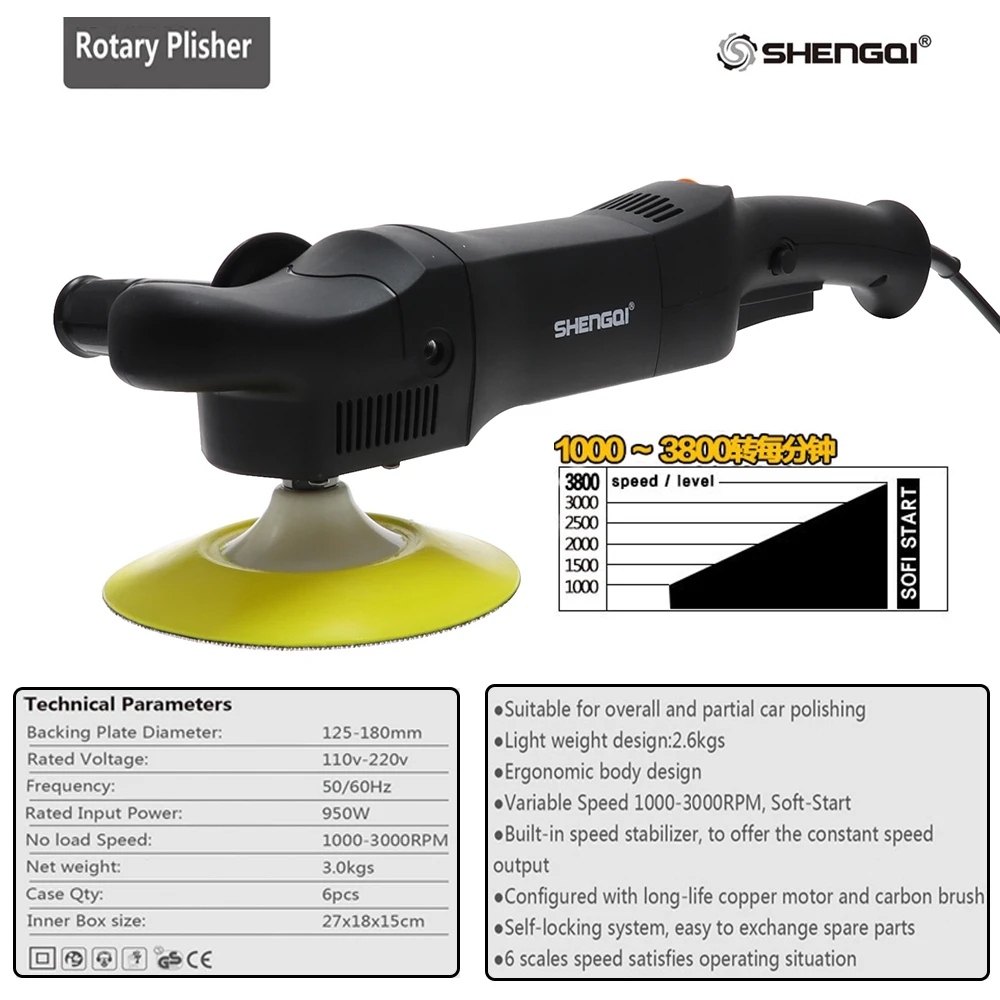 Полировальная машинка для автомобилей, 220 В, 950 Вт, 3800 обмин, 160 мм, переменная скорость
