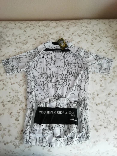 Дышащая белая велосипедная Джерси от KEMALOCE в стиле унисекс с изображением мультяшного кота, Весенняя Экологически чистая велосипедная одежда с защитой от пиллинга, верхняя одежда для поездок на велосипеде