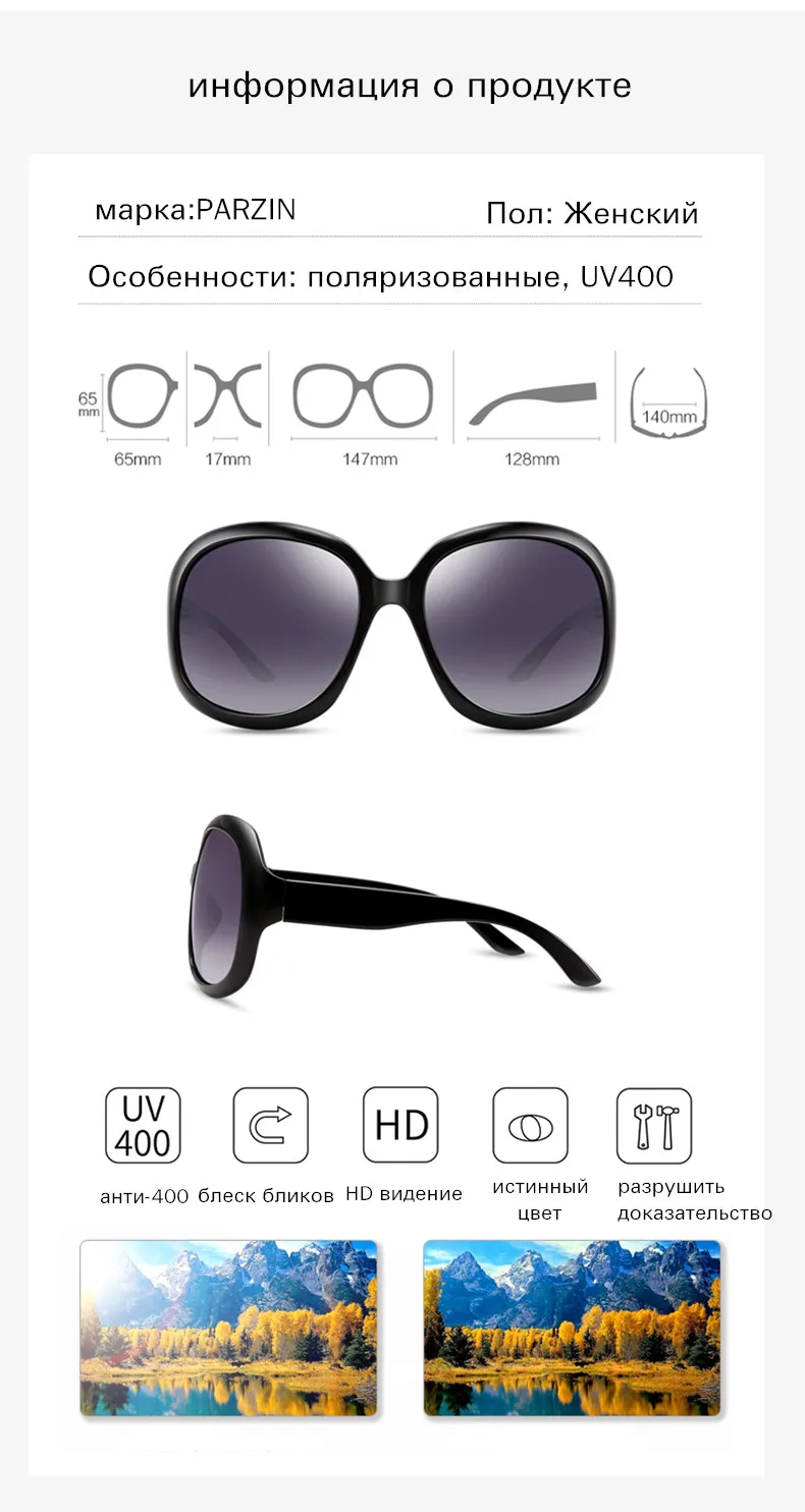 PARZIN солнцезащитные очки Для женщин Брендовая Дизайнерская обувь элегантный стерлингового серебра Большой Рамка поляризованные солнцезащитные очки женские солнцезащитные очки УФ 400 женские очки с Чехол