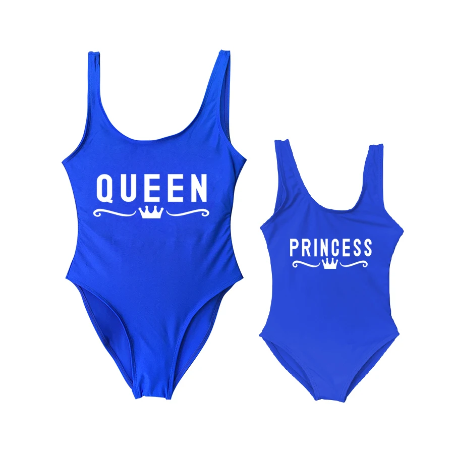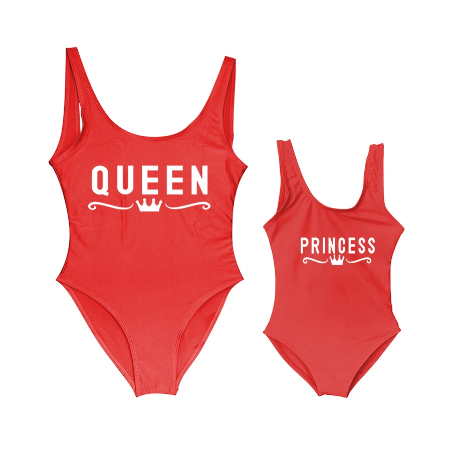 Слитный купальник для мамы и дочки, с принтом в виде букв