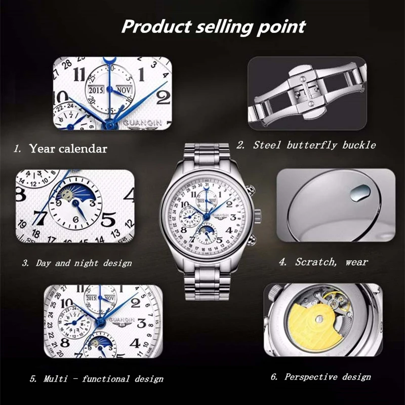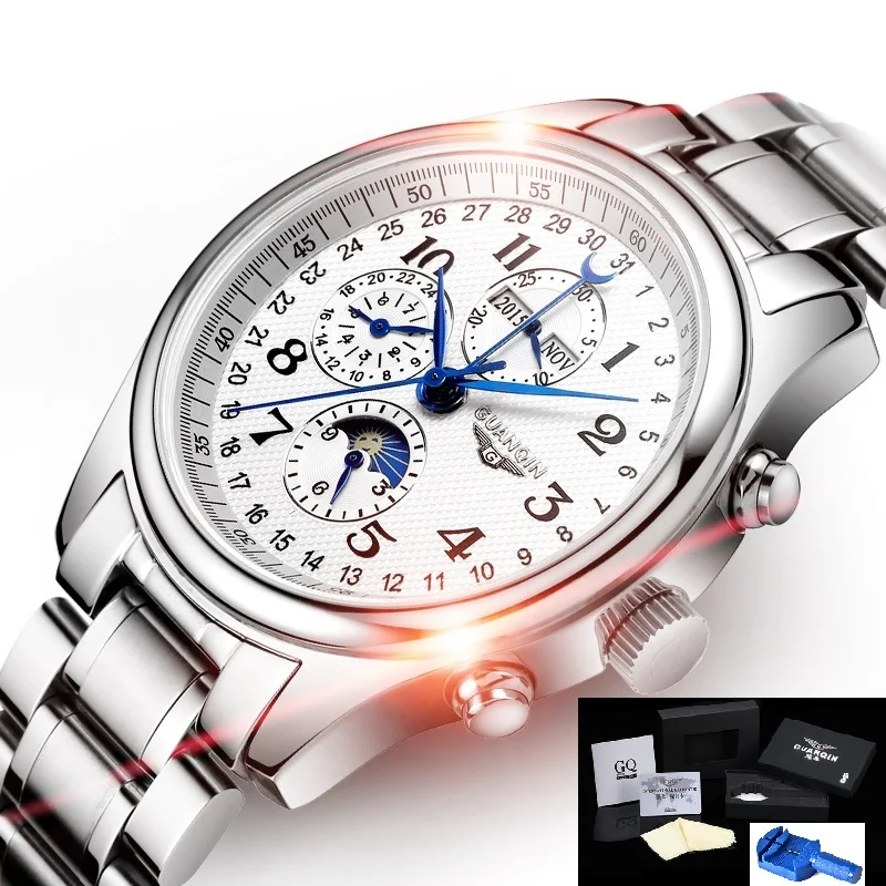 GUANQIN кварцевые часы Для мужчин GQ20022 Для мужчин s часы лучший бренд класса люкс Механические часы кожа Нержавеющаясталь Мужские автоматические часы