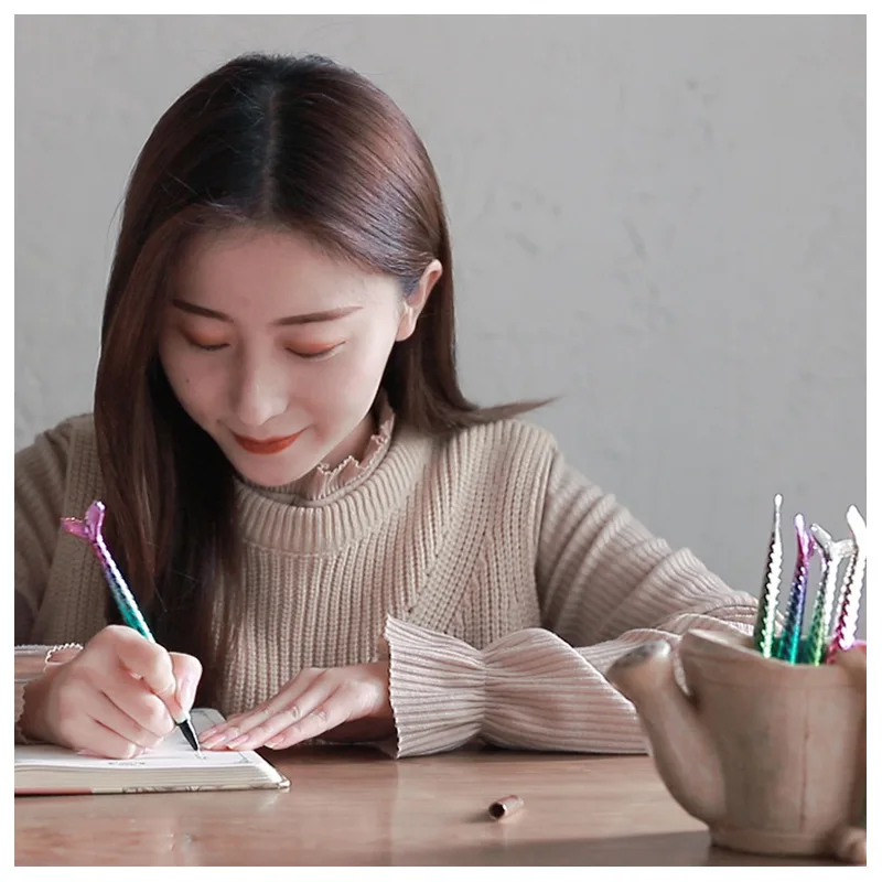 2 предмета каваи ручки креативные красочные Русалка гелевая ручка 0,5 мм черные, голубые чернила Эсколар... студенческие Симпатичные Ручки школы канцелярские товары