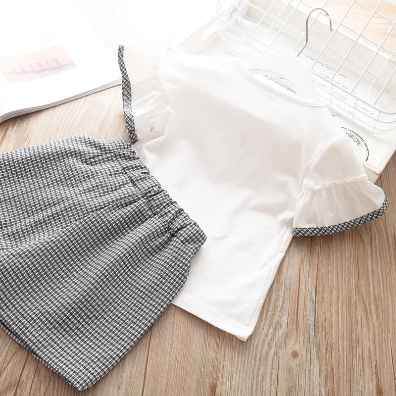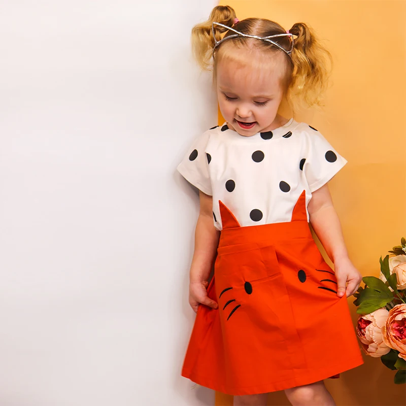 Одежда для девочек 2 лет летние комплекты для маленьких девочек детская одежда Топ в горошек с короткими рукавами + юбка с кошкой из мультфильма, комплект из 2 предметов, платье для девочек