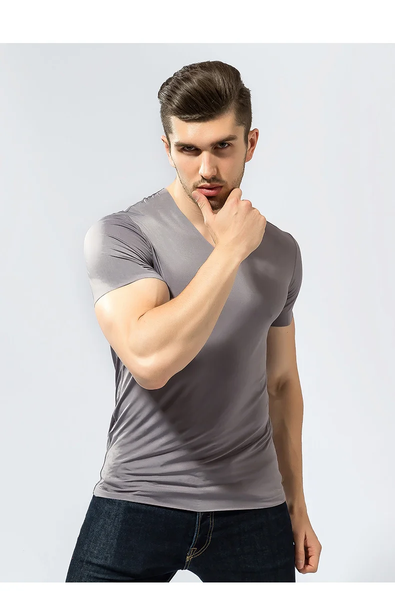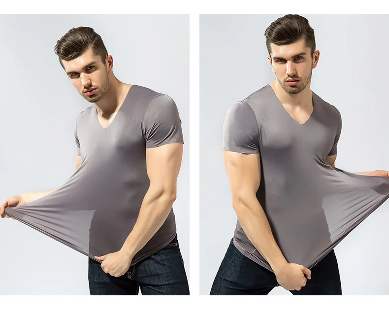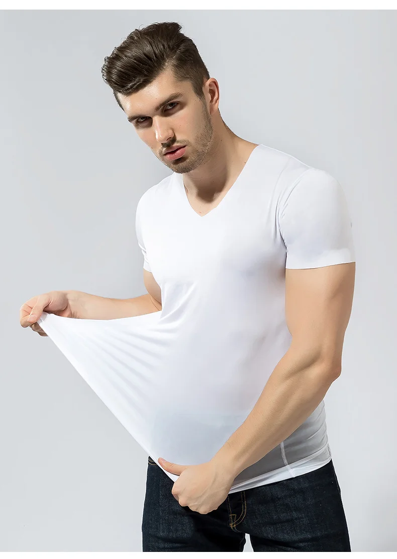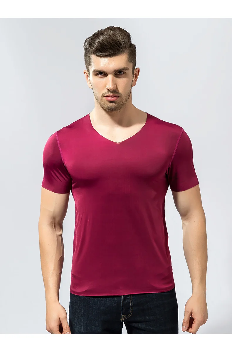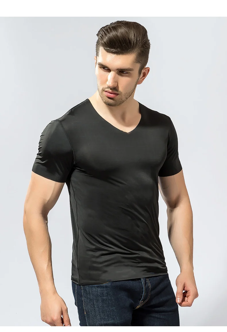 Футболка мужская летняя прозрачная, пикантная сетчатая рубашка из вискозы, с V-образным вырезом, с короткими рукавами, 2021 размера плюс, однотонная, L-4XL
