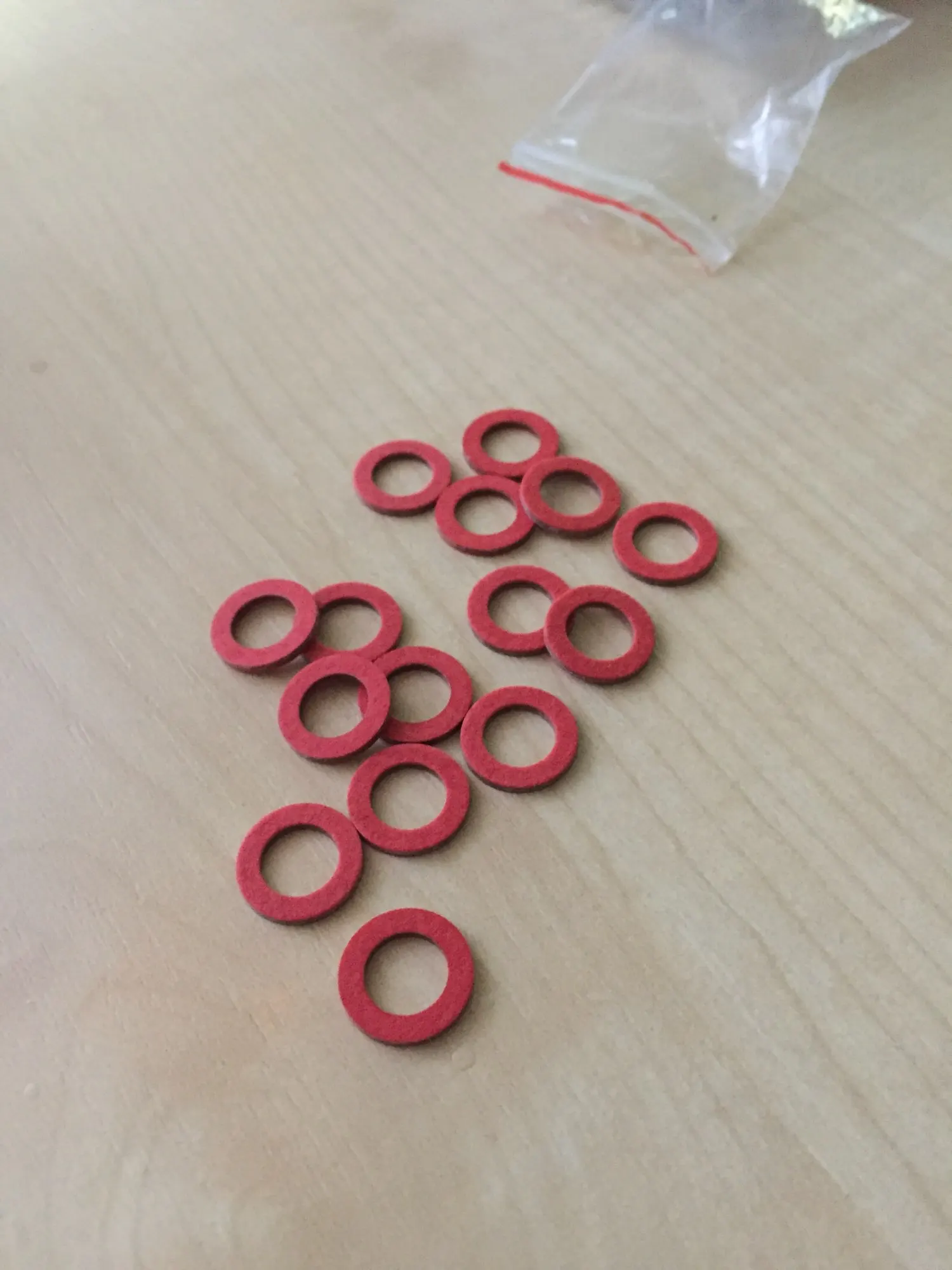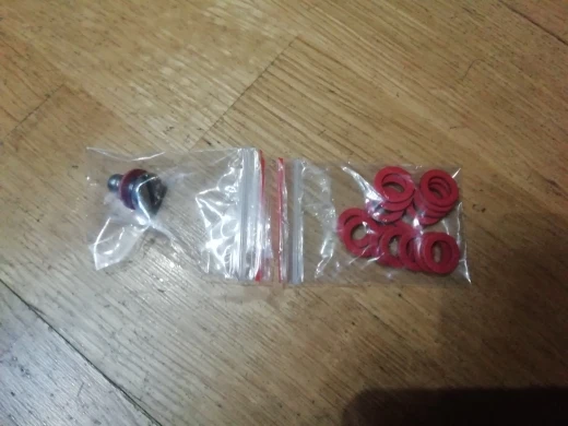 Прокладки на вид и ощупь хорошие, хотя на воде ещё не проверял. По размеру подходят к винтам слива масла редуктора.