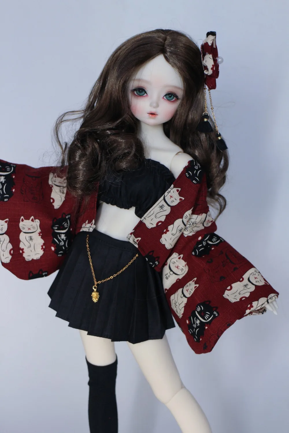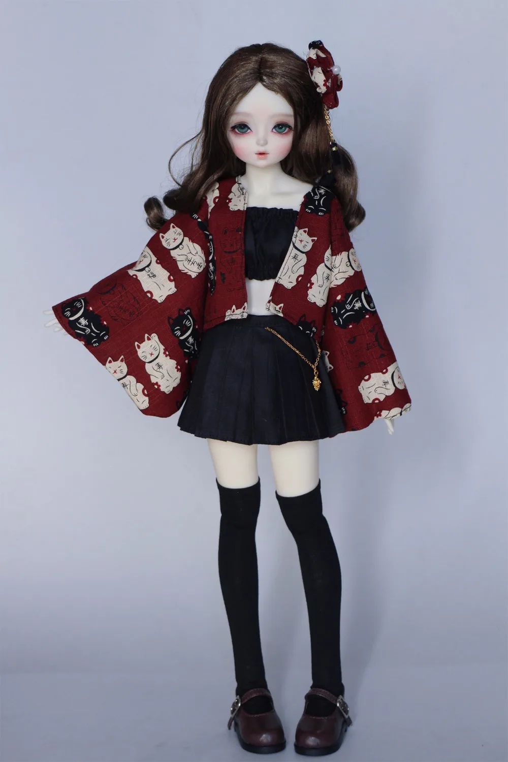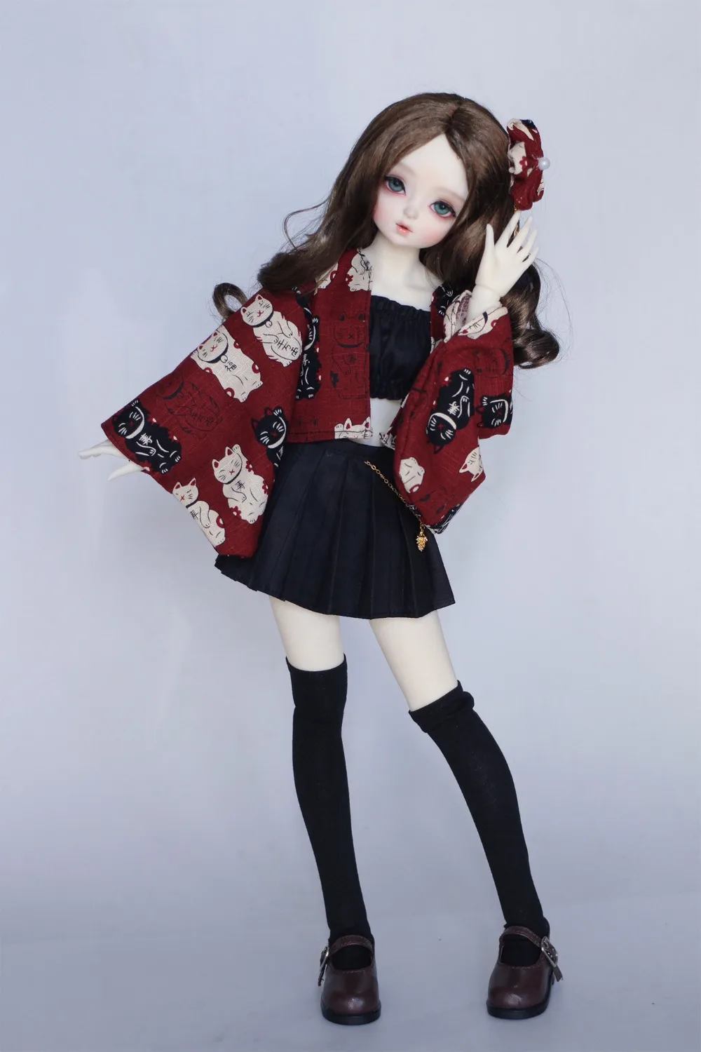 1 комплект = 5 шт. симпатичное японское кимоно, кардиган, пальто + без бретелек + черная юбка + повязка для волос + чулки для шарнирных кукол 14 16, Одежда для кукол