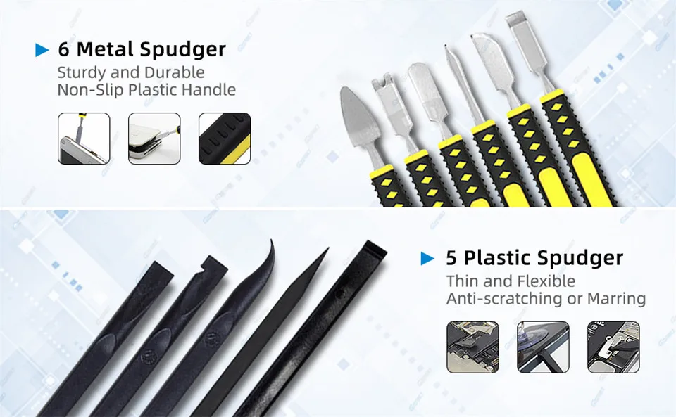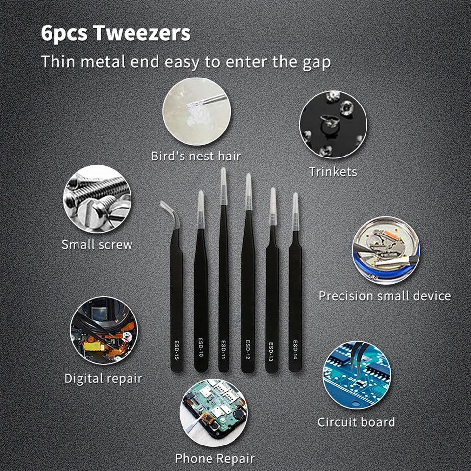 ● 100% абсолютно новый и высококачественный набор инструментов для ремонта ноутбука, набор для демонтажа, мобильный телефон ipad, набор инструментов (подходит для всех телефонов/ipad/ноутбуков)● Инструмент открывания позволяет легко и без повреждений открывать крышку мобильного телефона.● Необычная Нескользящая полоска на поверхности ручки и Вращающаяся крышка делают работу комфортной, повышают эффективность работы● Антистатические пинцеты, двухконтурные коронки, стержень из нержавеющей стали более удобен в использовании.● С сумкой для хранения легко хранить.● Идеально подходит для сохранения и обслуживания точной работы и оптических средств, таких как точные часы, мобильные телефоны, телевизоры, смартфоны, КПК, ПК и другие приложения.