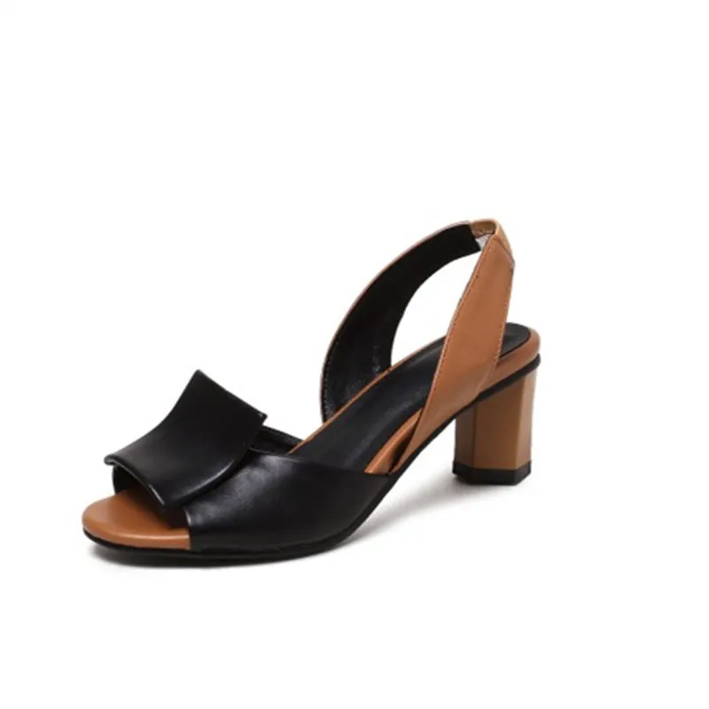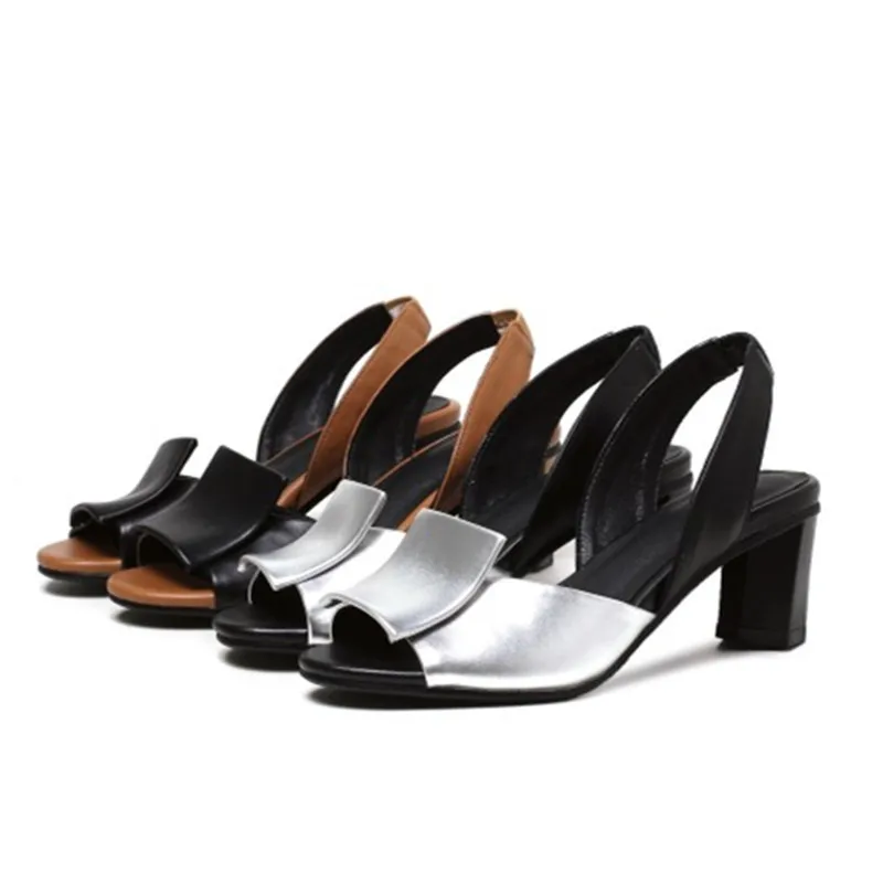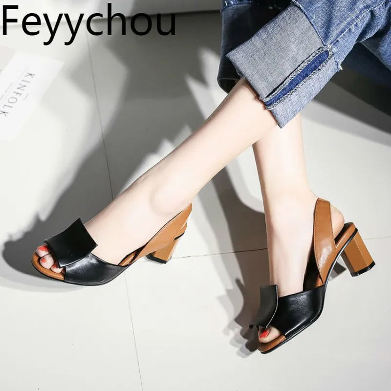 Женские босоножки из ПУ кожи, на высоком каблуке, с открытым носком, на резинке, на толстом каблуке, разные цвета, новинка 2021, пикантные модные повседневные Черные, большие размеры 34-44