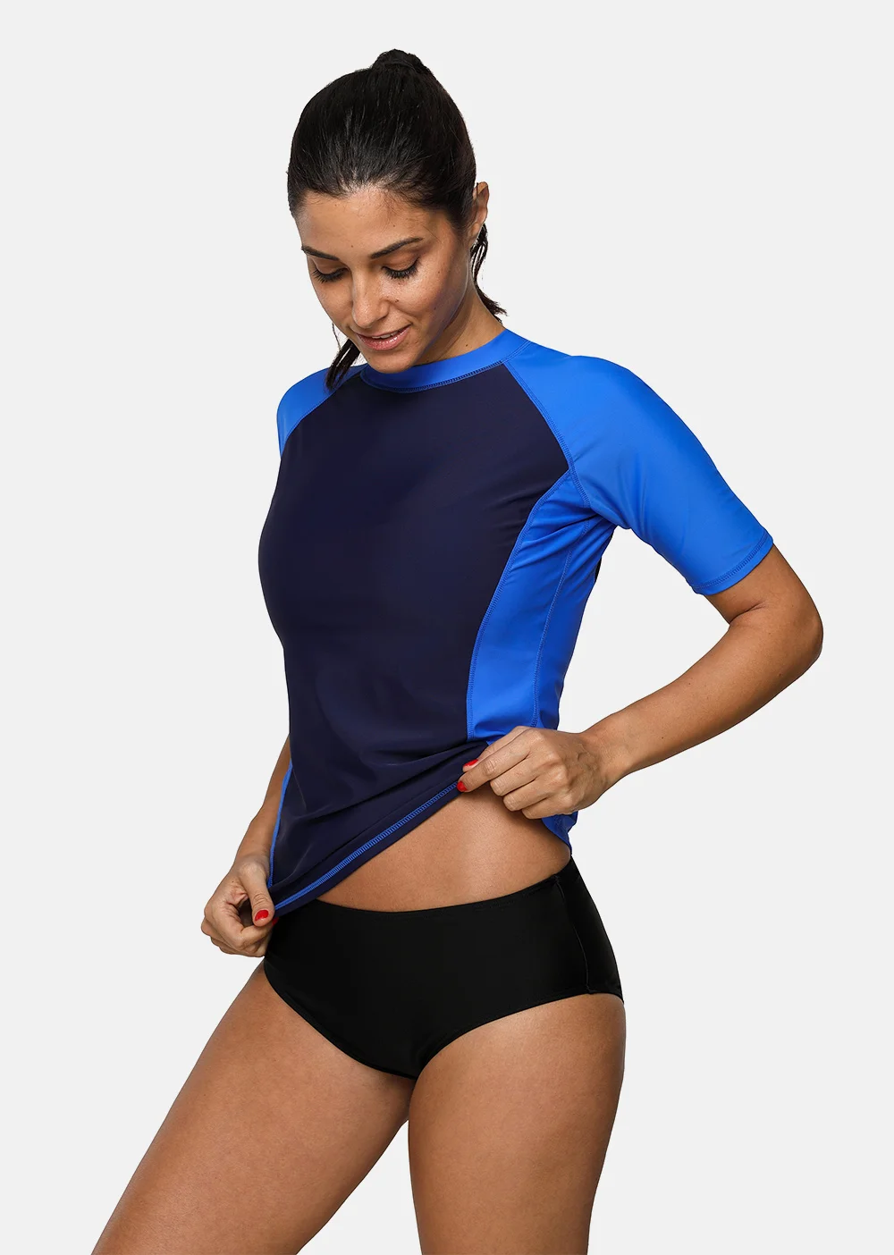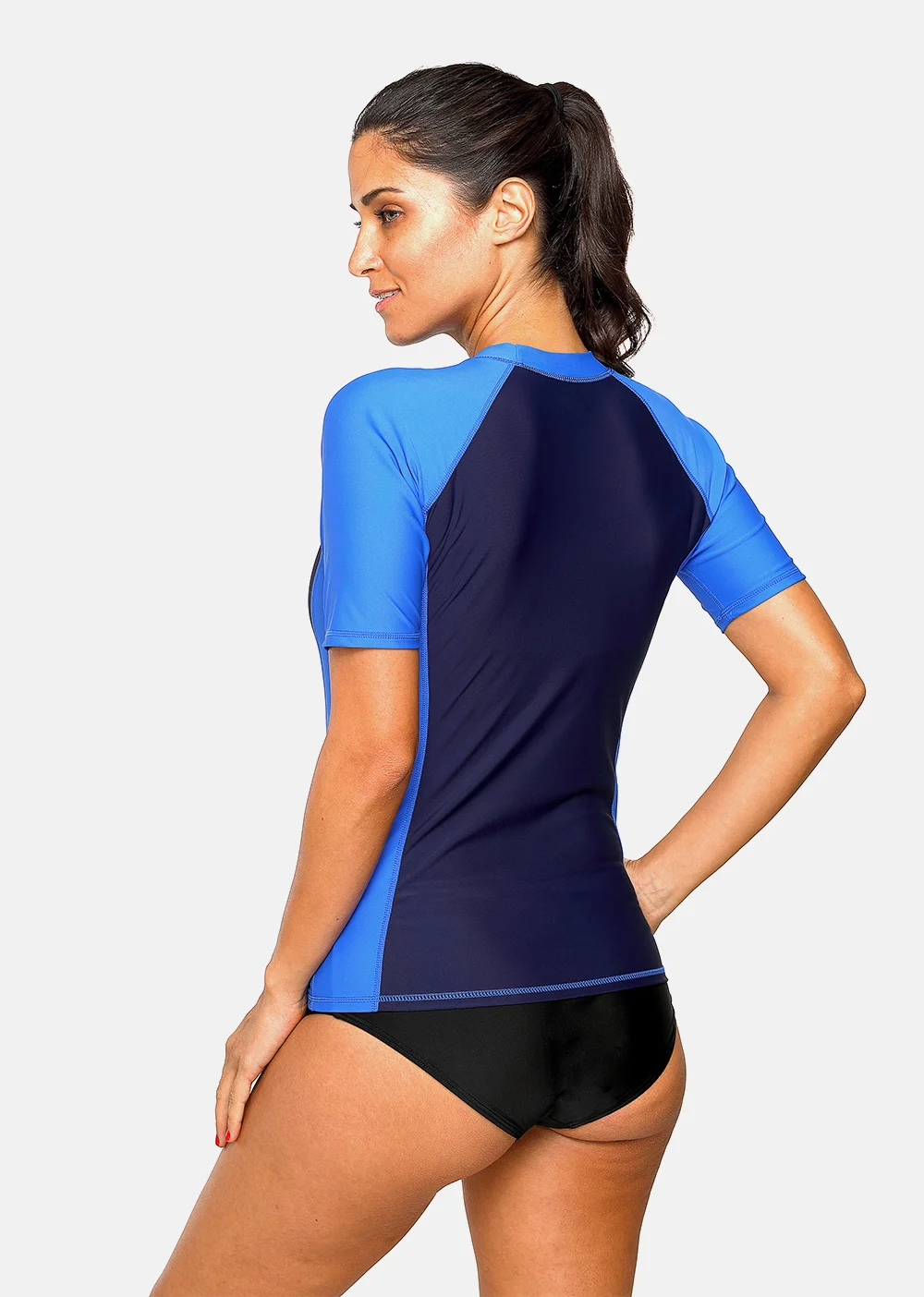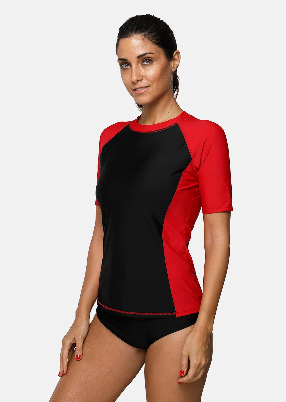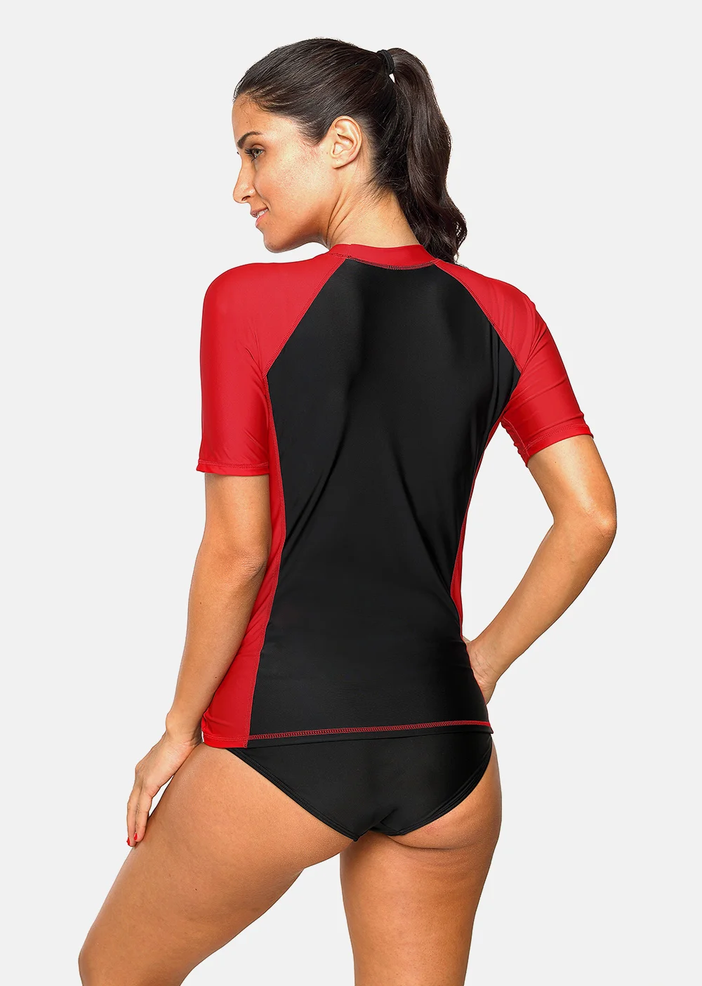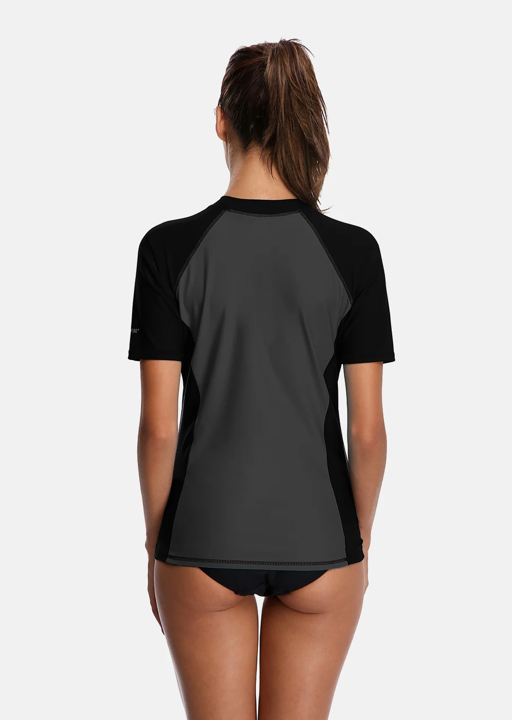 Аттракцион для женщин короткий рукав Рашгард рубашки Рашгард купальный костюм для серфинга Топ UPF 50 + рубашка для бега велосипедные рубашки купальник