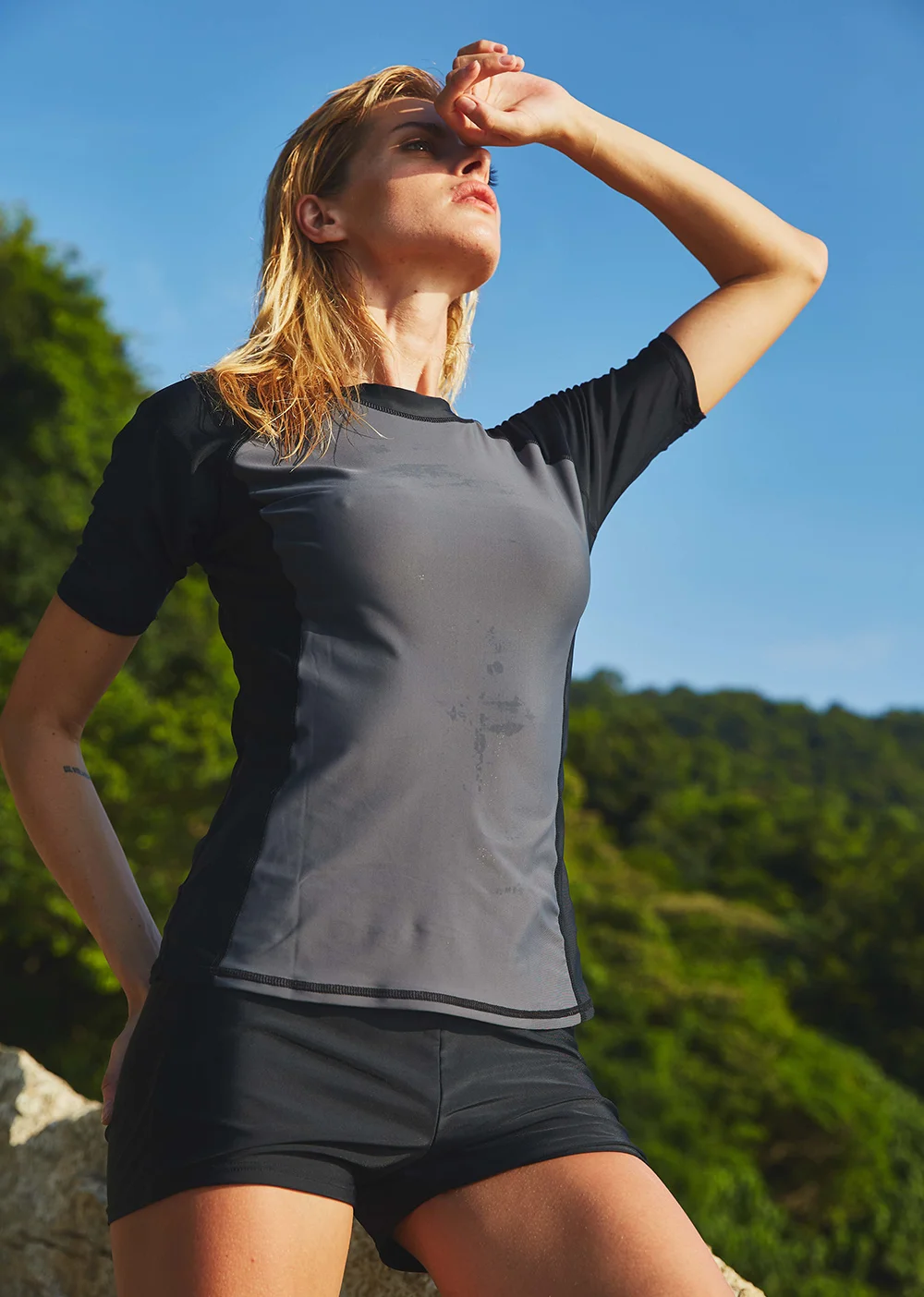 Attratico женская футболка с коротким рукавом, Рашгард, купальник для серфинга, топ UPF 50 +, рубашка для бега, велосипедные рубашки, купальник