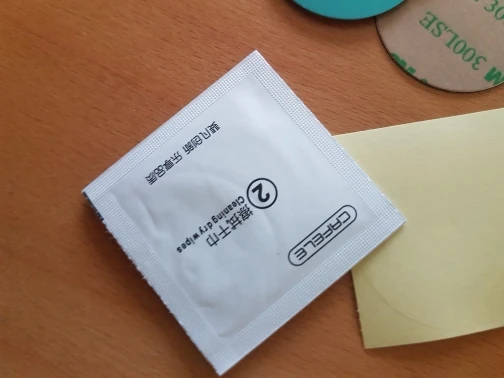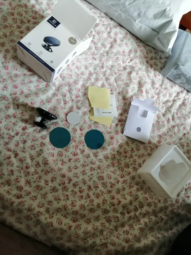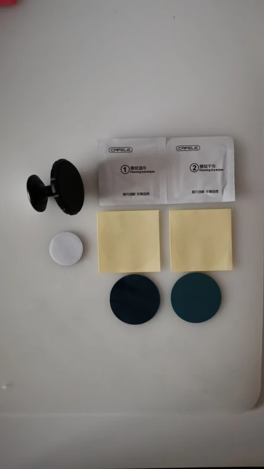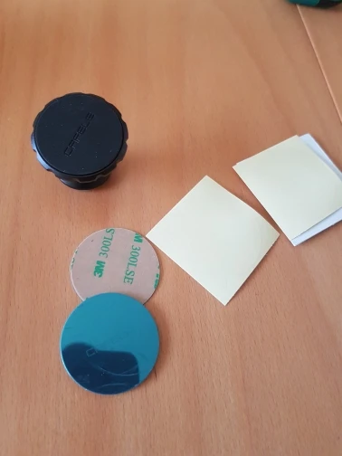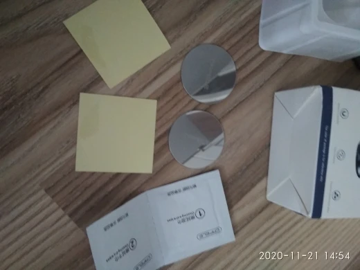 заказ шел больше двух месяцев, в комплекте два металлических диска, салфетка, и запасной скотч