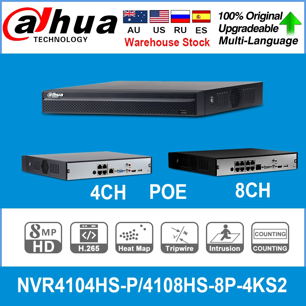DH NVR Европе NVR4104HS-P-4KS2 NVR4108HS-8P-4KS2 с 48ch PoE Порты и разъёмы H.265 видео Регистраторы Поддержка Порты и разъёмы гофрированных оцинкованных металлических POE NVR
