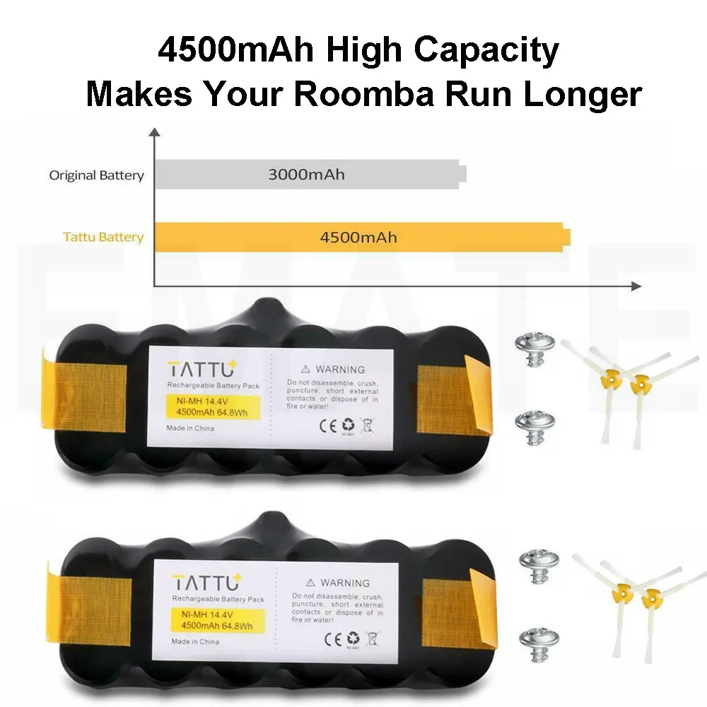 -Прямая замена-Сменный аккумулятор Tattu iRobot подходит для моделей аккумуляторов Roomba: 510, 530, 531, 532, 533, 535, 536, 540, 545, 550, 552, 560, 562, 570, 580, 595, 600, 620, 630, 650, 660, 700, 760, 770, 780, 790, 800, 870, 880, 980. Также совместим с вакуумом обнаружения, вакуумом для грязной собаки, создаем вакуумные модели.