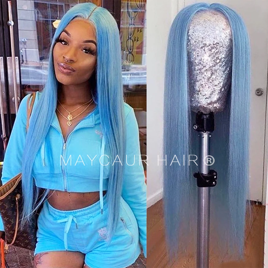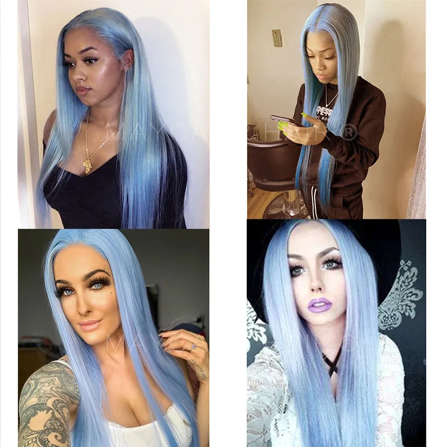 Парики Maycaur для чернокожих женщин, светло-голубые прямые длинные парики из синтетических волос с естественной линией волос