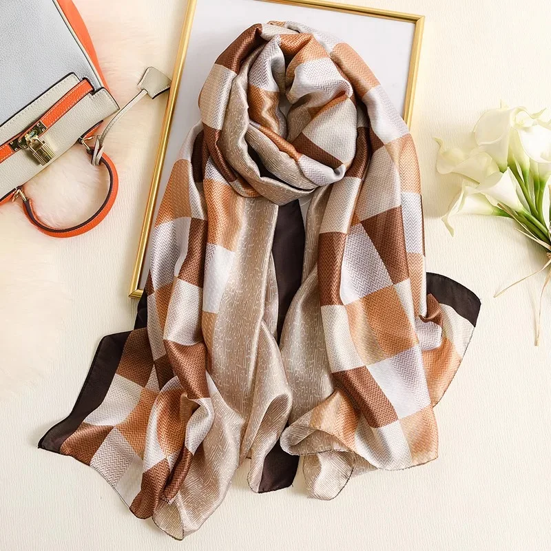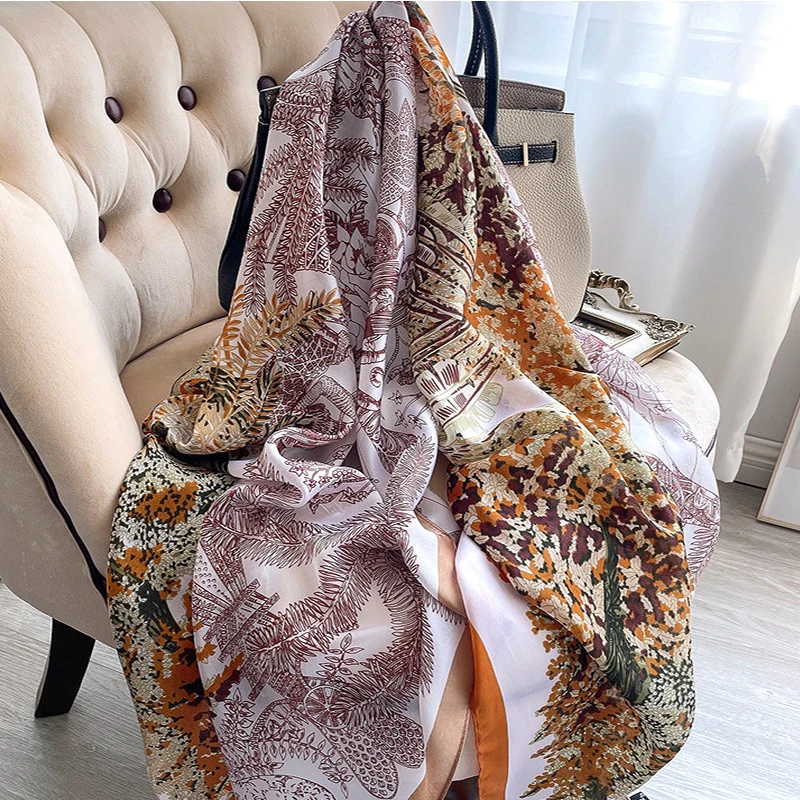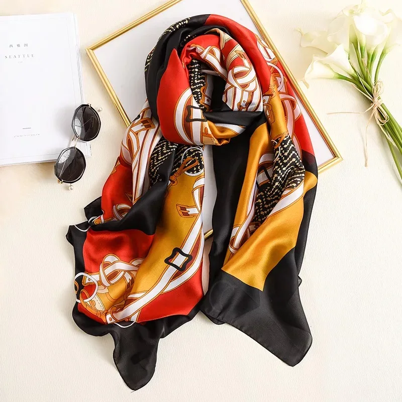 2022 роскошный солнцезащитный шелковый шарф 180*90 см женские дизай...