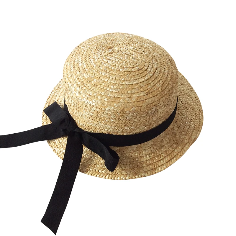 Шляпка от солнца с лентой для девочек, детская соломенная шляпка с черным украшением, летняя