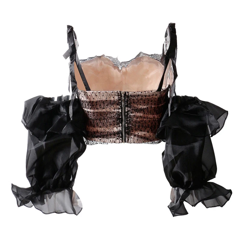Женская кружевная рубашка TWOTWINSTYLE, укороченный топ без рукавов с открытыми плечами и рукавами-фонариками, весна 2020