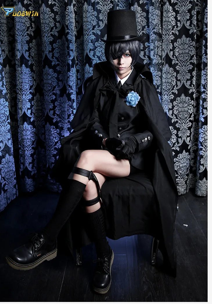 SBluu Косплей Аниме Черный дворецкий Ciel Phantomhive похорон Косплей Костюм Kuroshitsuji костюм на Хэллоуин