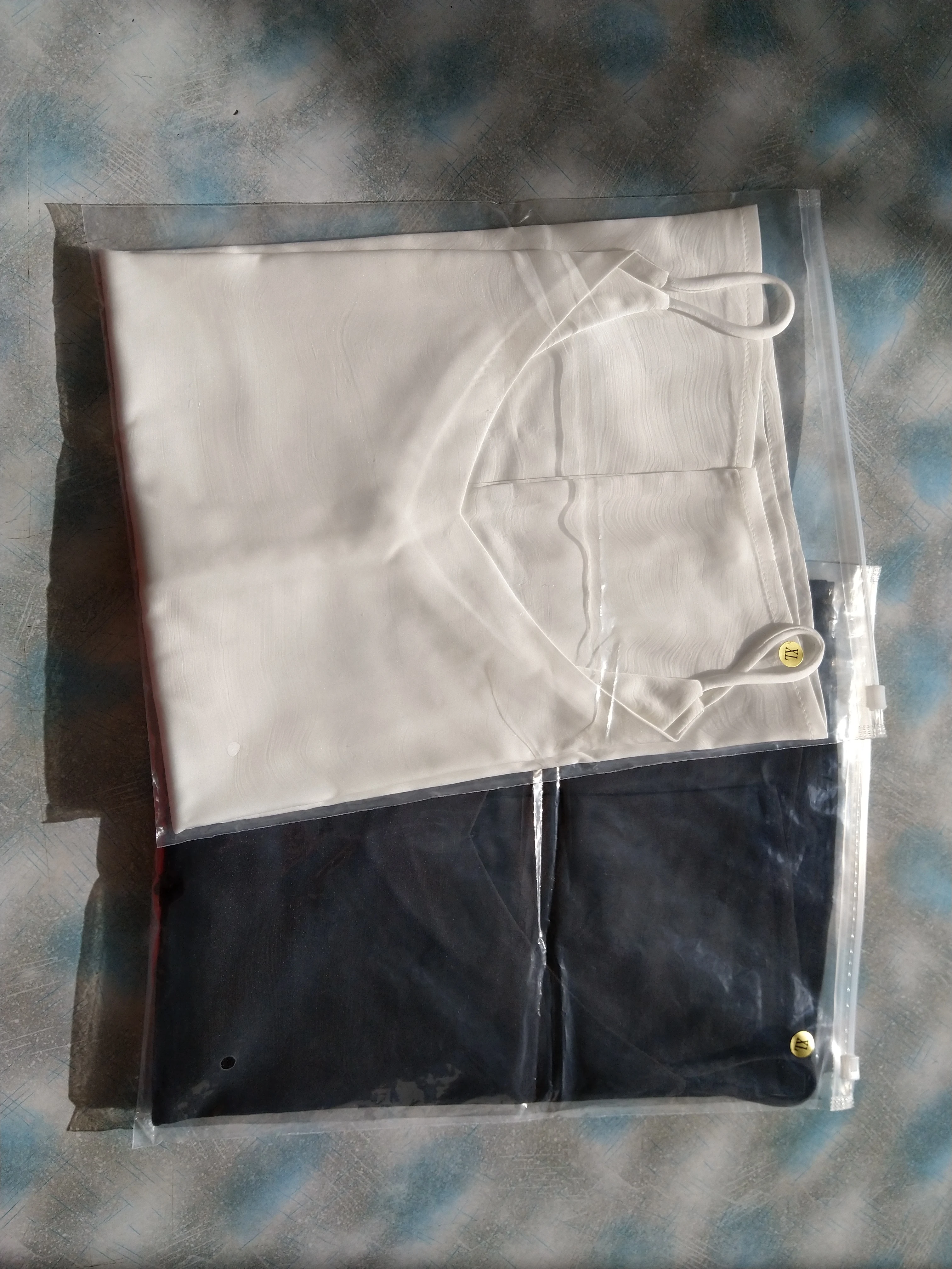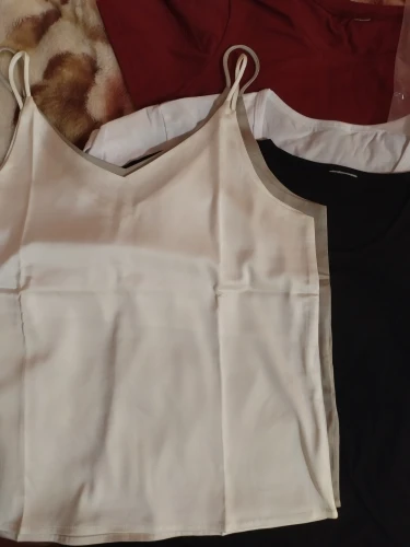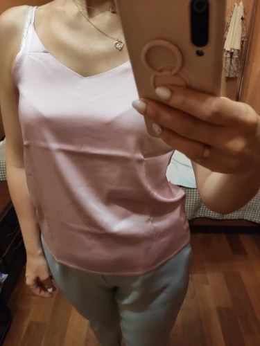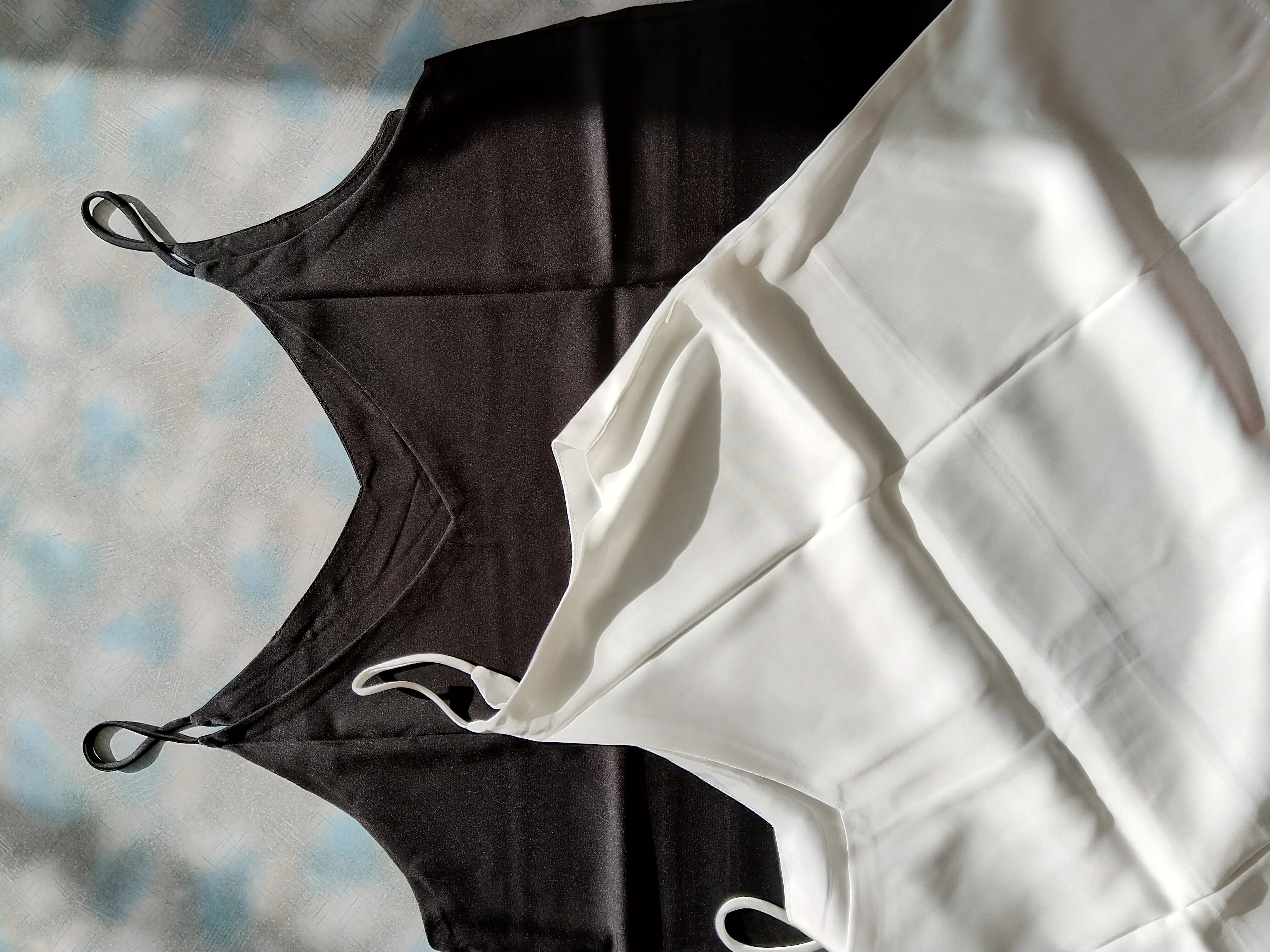 Классные топы за хорошую цену. Посылку доставили быстро, за 7 дней, для меня это рекорд. Ткань вроде тонкой синтетики, приятная к телу, немного тянется. На размер 44–46 и объём груди 80 В, взяла XL и не прогадала, топы сидят свободно и не обтягивают, длина тоже комфортная. В области бюста ткань двойная в связи с чем ничего не просвечивает. В будущем планирую взять ещё голубой и розовый. Неистово плюсую и рекомендую к покупке.