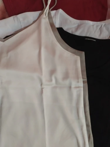 майки супер - после стирки не появилось катышков, не полиняли, не сели. очень мягкий материал, лёгкий, это не шелк конечно, но носить приятно, аллергии не вызвал. на размер 46 (ог 100, от 71), отлично подошёл Л. ношу без нижнего белья, поэтому хотелось подкладку поплотнее, но и так отлично. немного мнется