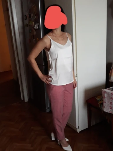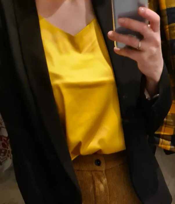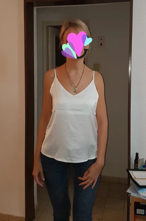 Топ отличный. Ткань лёгкая, слегка тянется, заказала на размер больше, чтобы сидел свободно. Очень довольна покупкой. Рекомендую.