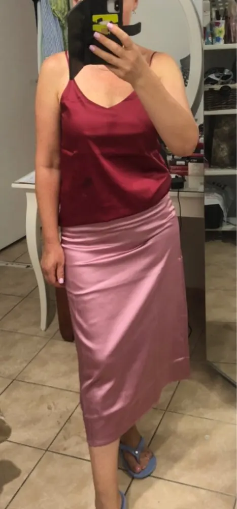 Классный топ. Я взяла чуть свободнее, чем замеры. Можно брать точно по замерам, материал эластичный. Сшит очень аккуратно