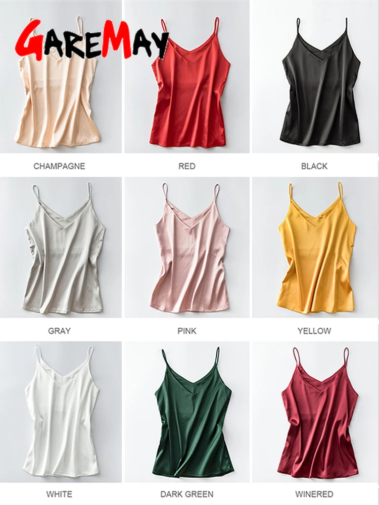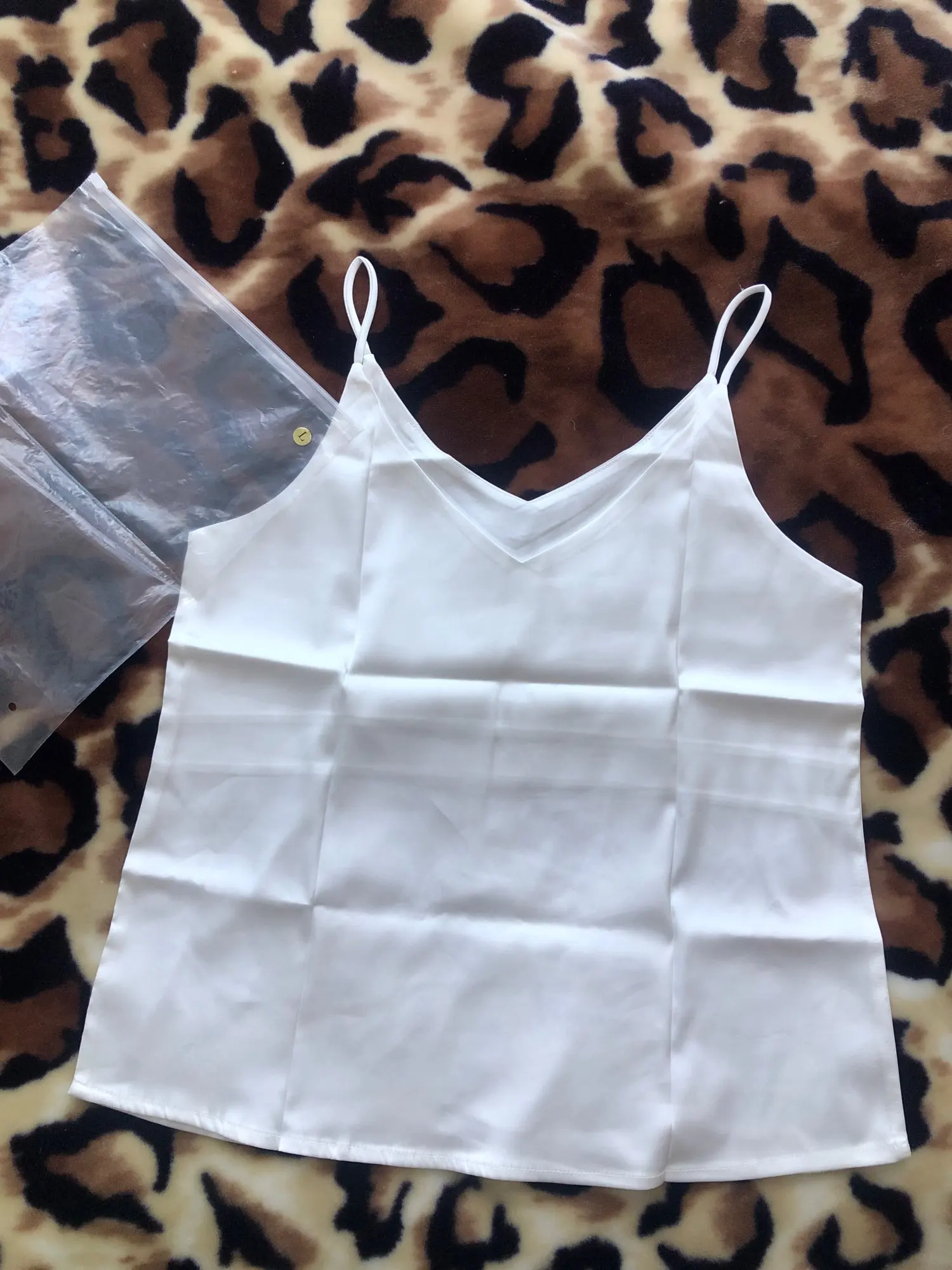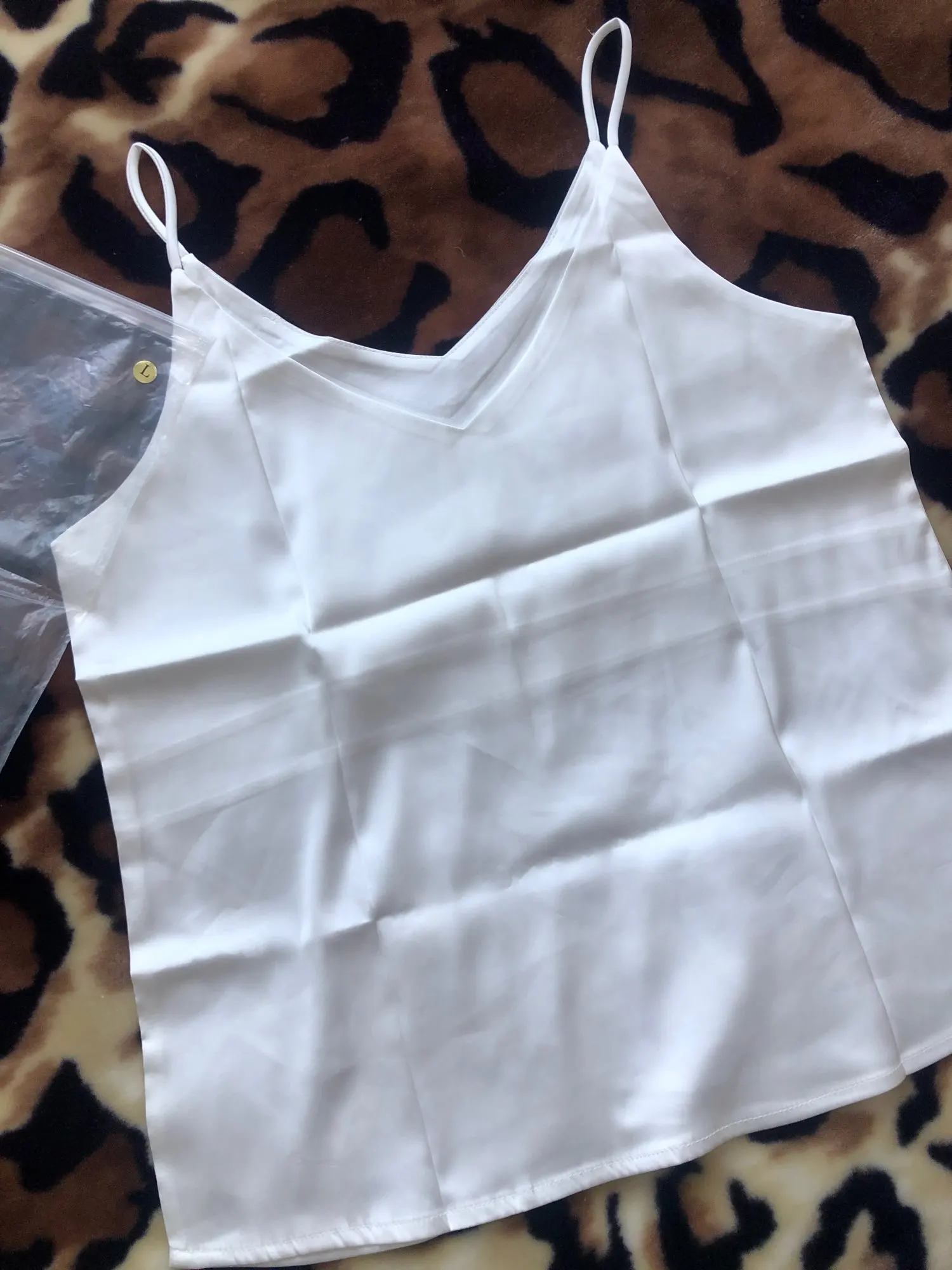 Женский топ на тонких бретельках с v-образным вырезом, белая майка без рукавов, атласные шелковые майки, женская летняя кофта, большие размеры, майка шелковая, майка на лямках, атласный топ,топы для женщин летний стиль