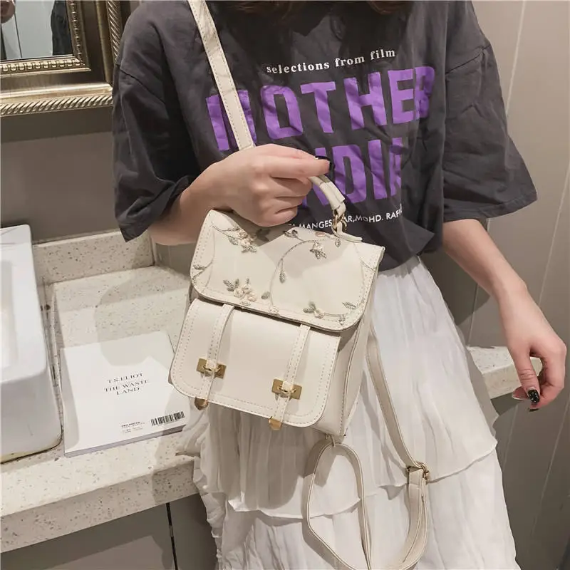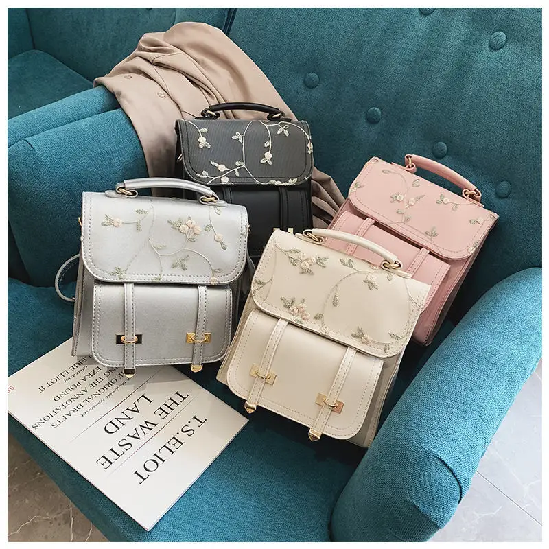 Модные школьные рюкзаки в стиле преппи для девочек-подростков, высококачественные кожаные женские сумки на плечо, рюкзак, рюкзак с цветочной вышивкой icon star icon star icon star icon star icon star