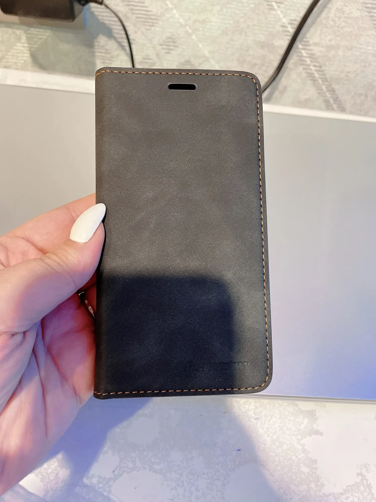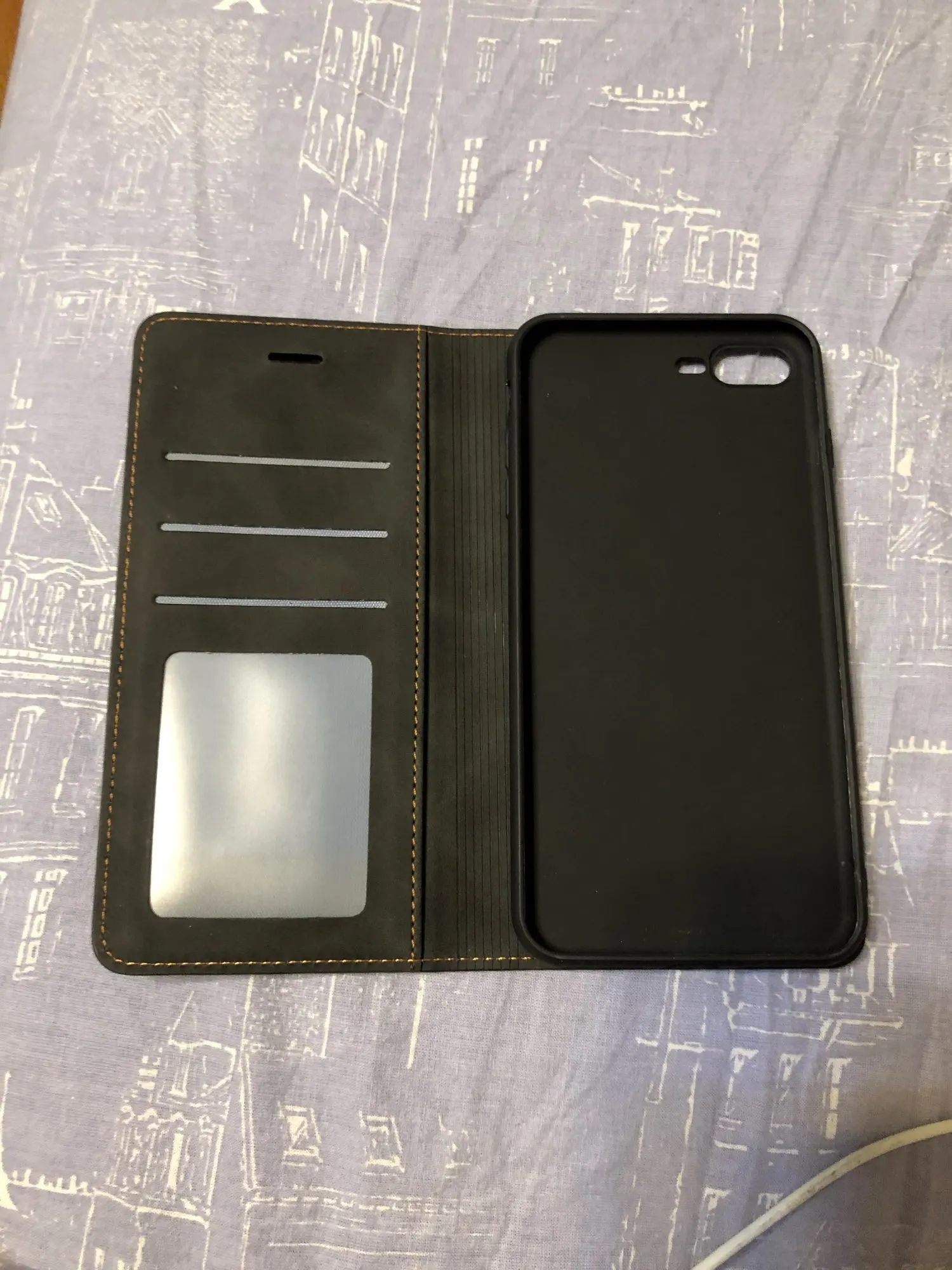 Хороший чехол книжка, с магнитной крышкой. Беру такой не первый раз, в прошлый раз брал аналогичный для 6S, служил долго и при падении телефон не разбился. Правда этот похоже замшевый, но плотный приятный. Приобретением доволен. Не рассчитывайте носить в нем карты, максимум одну иначе перестанет закрываться, магнит там не шибко сильный.