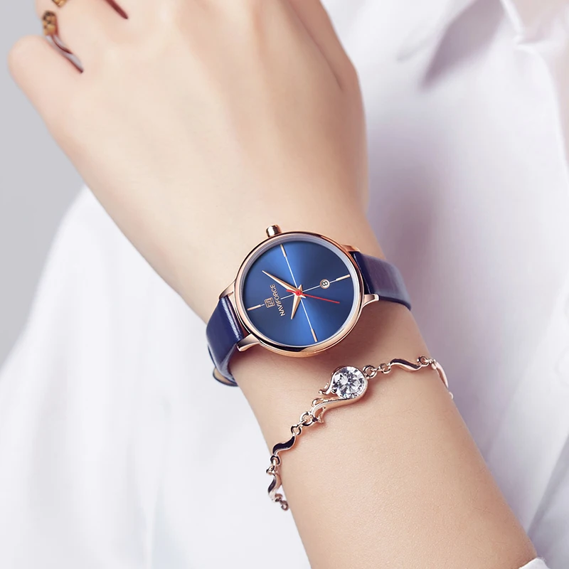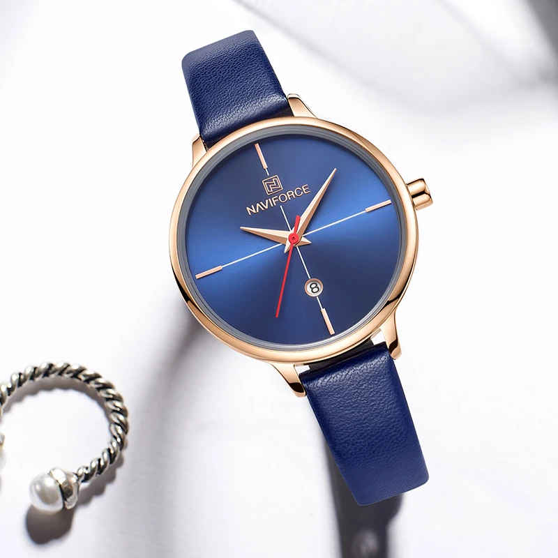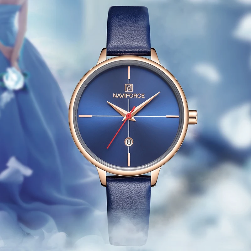 NAVIFORCE женские часы Модные Кварцевые женские синие ПУ ремешок для часов для свиданий повседневные 3ATM водонепроницаемые наручные часы подарок для девушки жены женщины 2019