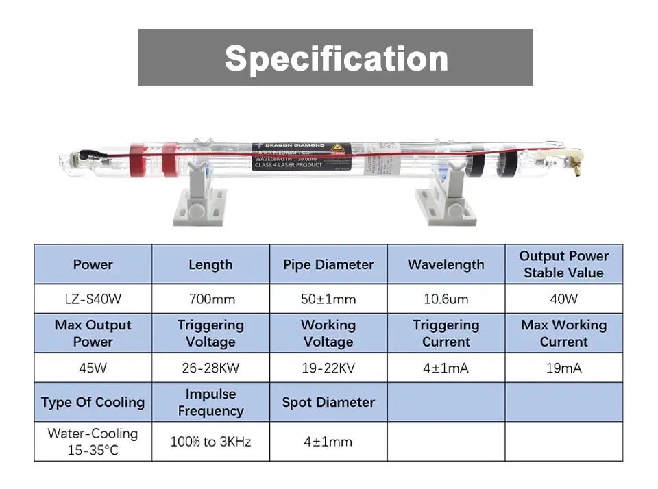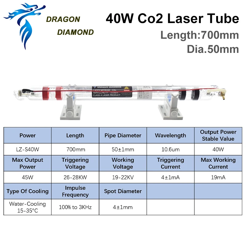 40 Вт Co2 металлическая головка лазерная трубка диаметр 50 мм длина 800 мм Лазерная лампа для CO2 лазерная гравировальная машина
