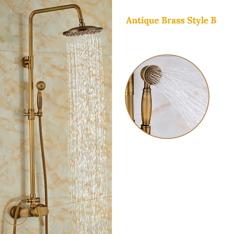 Античный латунный набор для душа Shinesia, смеситель для ванной комнаты, тропический кран 8 дюймов, одиночная ручка, настенный монтаж
