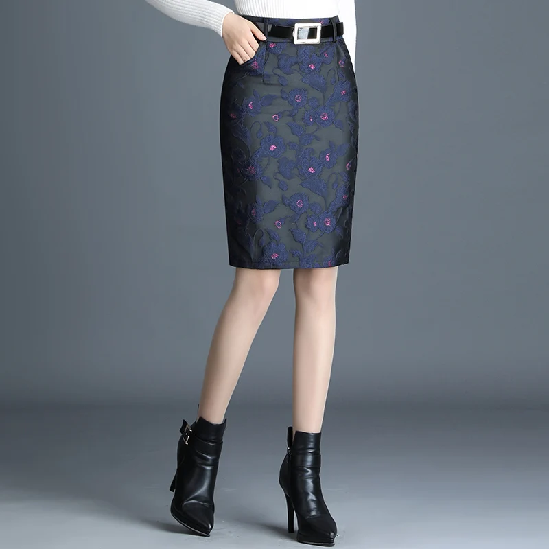 Юбка-карандаш женская с завышенной талией, офисная, до колен, с цветочным узором