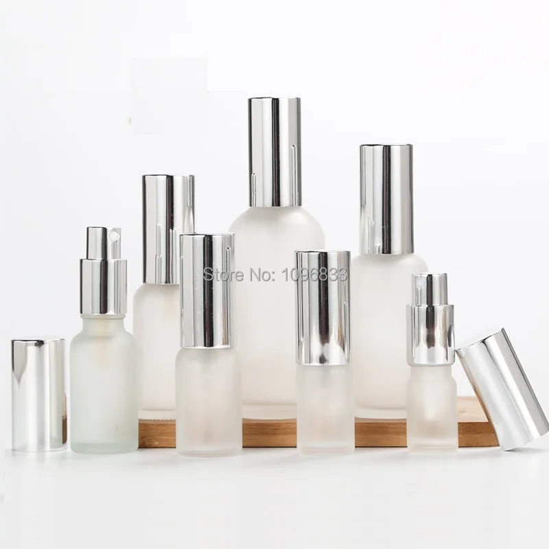 Матовая стеклянная бутылка 50 мл, 100 мл, стеклянная бутылка с распылителем, распылитель для тумана с серебряной крышкой, пустая бутылка для фотолосьона, 50 шт.