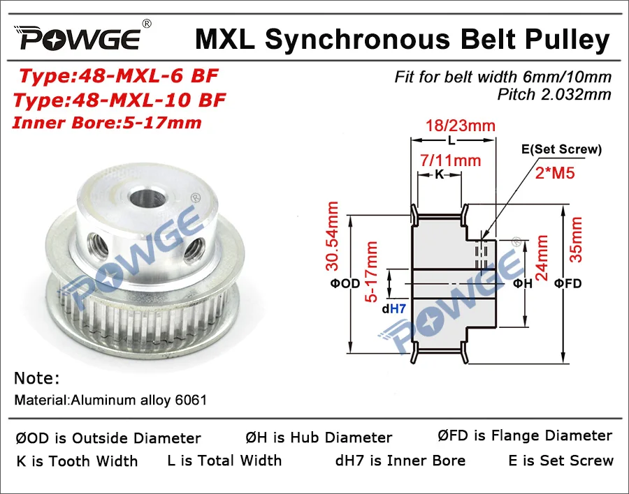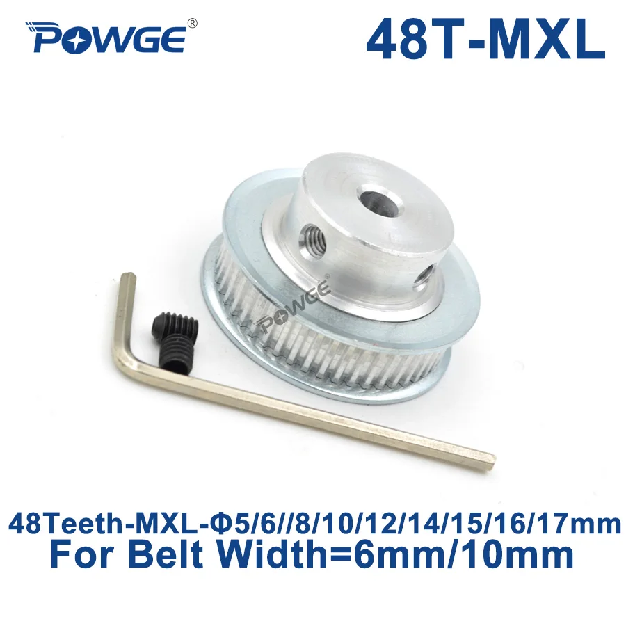 POWGE 48 зубьев MXL Зубчатый шкив Диаметр отверстия 568101214151617 мм для ширины 6 мм 10 мм MXL синхронный ремень зубчатое колесо 48 зубьев 48 T