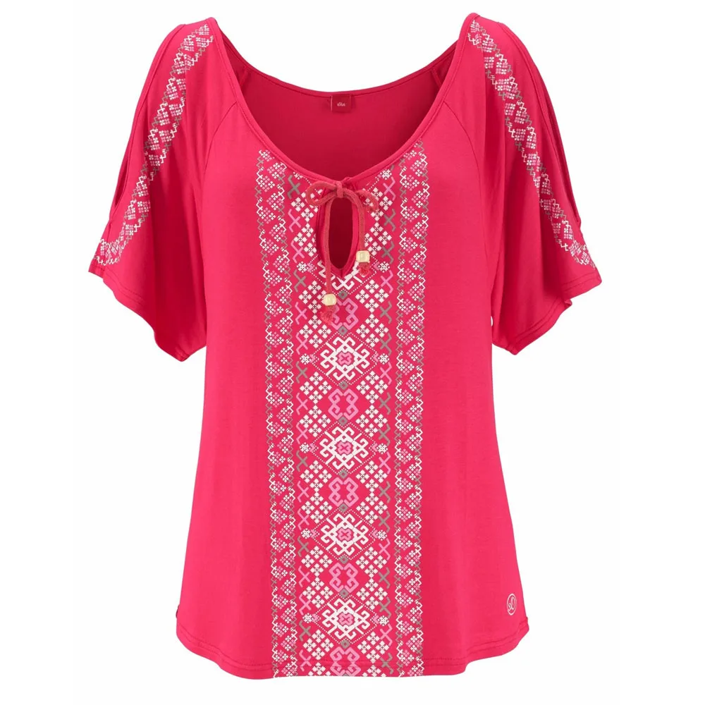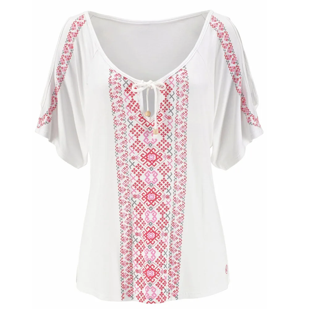 Женская блузка с коротким рукавом Feitong, свободная блузка в стиле бохо с v-образным вырезом и принтом, лето 2019