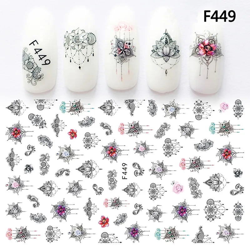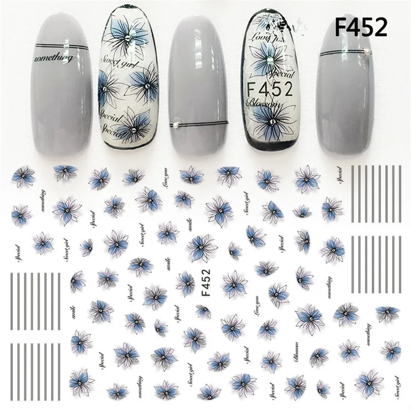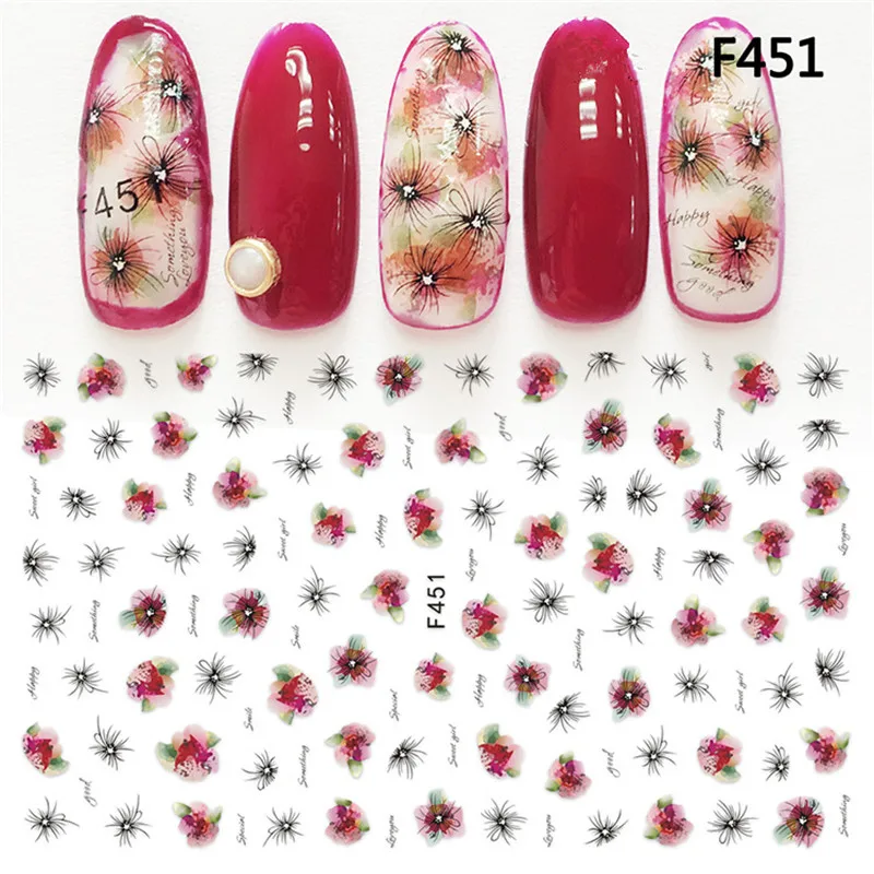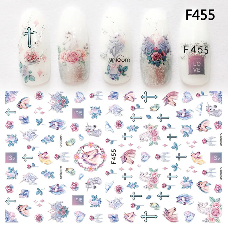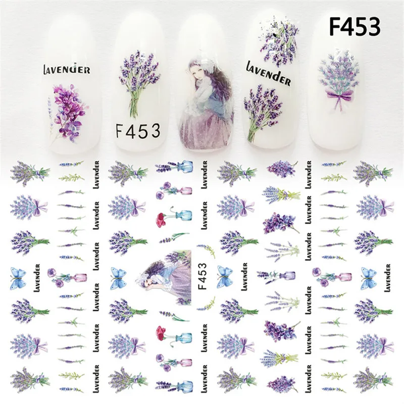 1 лист F454 наклейки для дизайна ногтей клейкий Единорог Лаванда цветок супер тонкие 3D маникюрные декоративные обертывания наклейки для ногтей новый дизайн