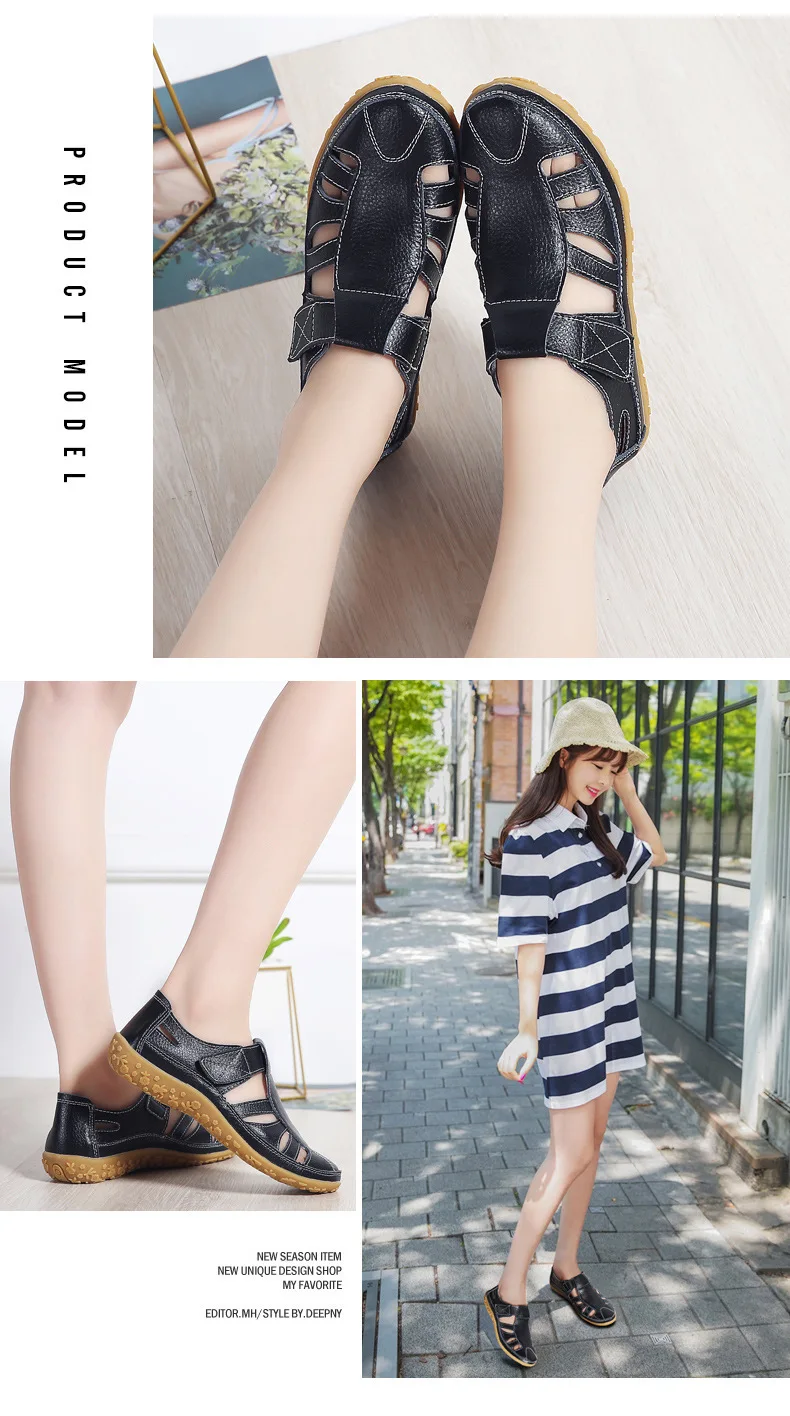Сандалии женские из натуральной кожи, дышащие босоножки, Мягкая Повседневная летняя обувь, пляжные босоножки, Размеры 35-42
